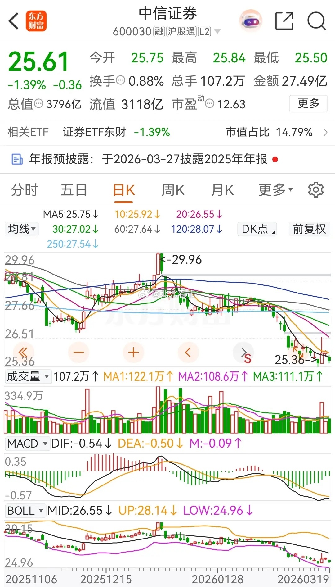 下面是机构对于东财和中信证券走势的预测,并出现了明显的分歧。AI模型对券茅和券商一哥给出极端预测:中信证券看涨至42元或看空至25元,东方财富预测44元或跌至18元,反映市场对券商股信心不足。部分机构认为,中信证券的低估值和高股息(2.6%)在弱市中更具防御性,而东财需依赖市场成交额回升修复弹性。