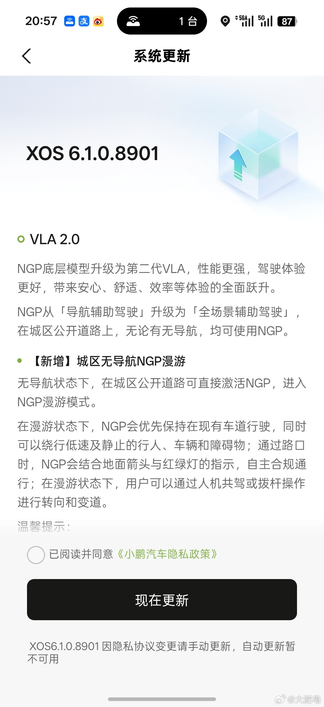 我的小鹏P7收到第二代VLA更新了!超大版本更新,超大包。我一会就试试,我倒是要看看罗永浩有没有吹牛。
