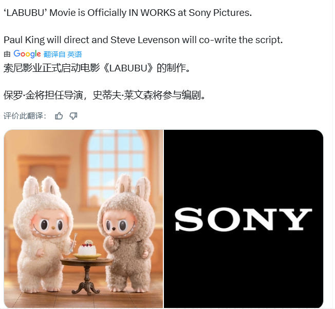 索尼影业正式启动玩偶Labubu电影企划,保罗·金担任导演,史蒂夫·莱文森参与编剧