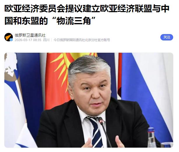 “中俄印大三角”彻底没戏!俄罗斯破局求生,普京建“新三角”? 最近国际局势越发动荡,美西方国家对俄罗斯的围堵越来越紧,从经贸制裁到物流封锁,一步步把俄罗斯逼到了地缘和经济的双重困境里。 而俄罗斯酝酿了几十年的“中俄印大三角”构想,如今也彻底落空,成为了过往。 可能很多人不知道,“中俄印大三角”不是俄罗斯一时兴起的想法,从上世纪90年代末就提出来了。 当时俄罗斯刚经历苏联解体,经济衰退、国际地位下滑,急需找到突破口。 这个构想的核心很简单,就是联合中国和印度这两个亚洲大国,搭建横跨欧亚的合作联盟,既能制衡美国主导的单极秩序,也能借助中国的发展红利和印度的市场潜力,摆脱对西方的依赖。 最初这个构想确实有一定基础,中国需要俄罗斯的能源和原材料,印度想拓展国际市场,三方看似能互利共赢。 但现实很残酷,这一构想最终还是破产了。 核心原因就是印度的战略转向,随着美国不断拉拢,印度逐渐向西方靠拢,放弃了多边平衡的立场,直接打破了大三角的核心基础。 再加上俄乌冲突后,西方对俄罗斯实施全方位制裁,俄欧经贸联系近乎腰斩,推进这一构想的外部条件也彻底消失了。 俄罗斯早已呈现“剑指欧美、亲近亚太”的倾向,“中俄印大三角”落空后,普京政府没有坐以待毙,而是快速调整战略,全力推进“向东看”政策,一个全新的“欧亚经济联盟+中国+东盟”物流大三角构想,在近期正式浮出水面。 这个新构想是在2026年3月16日莫斯科举办的首届中俄物流商务论坛上正式提出的,据新华网报道,欧亚经济委员会相关负责人明确表示,要将欧亚经济联盟、中国、东盟的资源深度绑定,搭建跨境物流闭环。 欧亚经济联盟是以俄罗斯为主导,包含哈萨克斯坦、白俄罗斯等国的区域组织,核心优势在能源和原材料,但轻工业薄弱、内部市场狭小,急需外部合作。 俄罗斯推出这个新构想,其实是无奈之下的务实选择。 一方面,东盟有6亿多人口的庞大市场,对能源需求旺盛,能帮俄罗斯分散出口风险;另一方面,能借助中国完善的供应链,弥补自身轻工业的短板。 而且这也不是临时起意,普京过去十几年一直强调要打通欧亚大陆联通通道,与中国“一带一路”倡议、东盟合作对接。 不过,这个新三角要落地并不容易。 根据中国外交部相关表态,东盟长期奉行战略自主、大国平衡原则,不会轻易绑定单一阵营。 再加上俄罗斯远东地区基础设施老旧,物流成本高、效率低,和东盟成熟的海运线路相比没有优势,再加上多方协作协调难度大、资金缺口大等问题,短期内很难形成规模。 说到底,俄罗斯从“中俄印大三角”到“物流新三角”,都是被西方围堵后的破局尝试。 这个新构想能不能成功,关键不在于俄罗斯单方面的推动,而在于中国和东盟的合作意愿。 无论如何,这都是俄罗斯向东突围的重要一步,也必将影响欧亚大陆的地缘经贸格局。