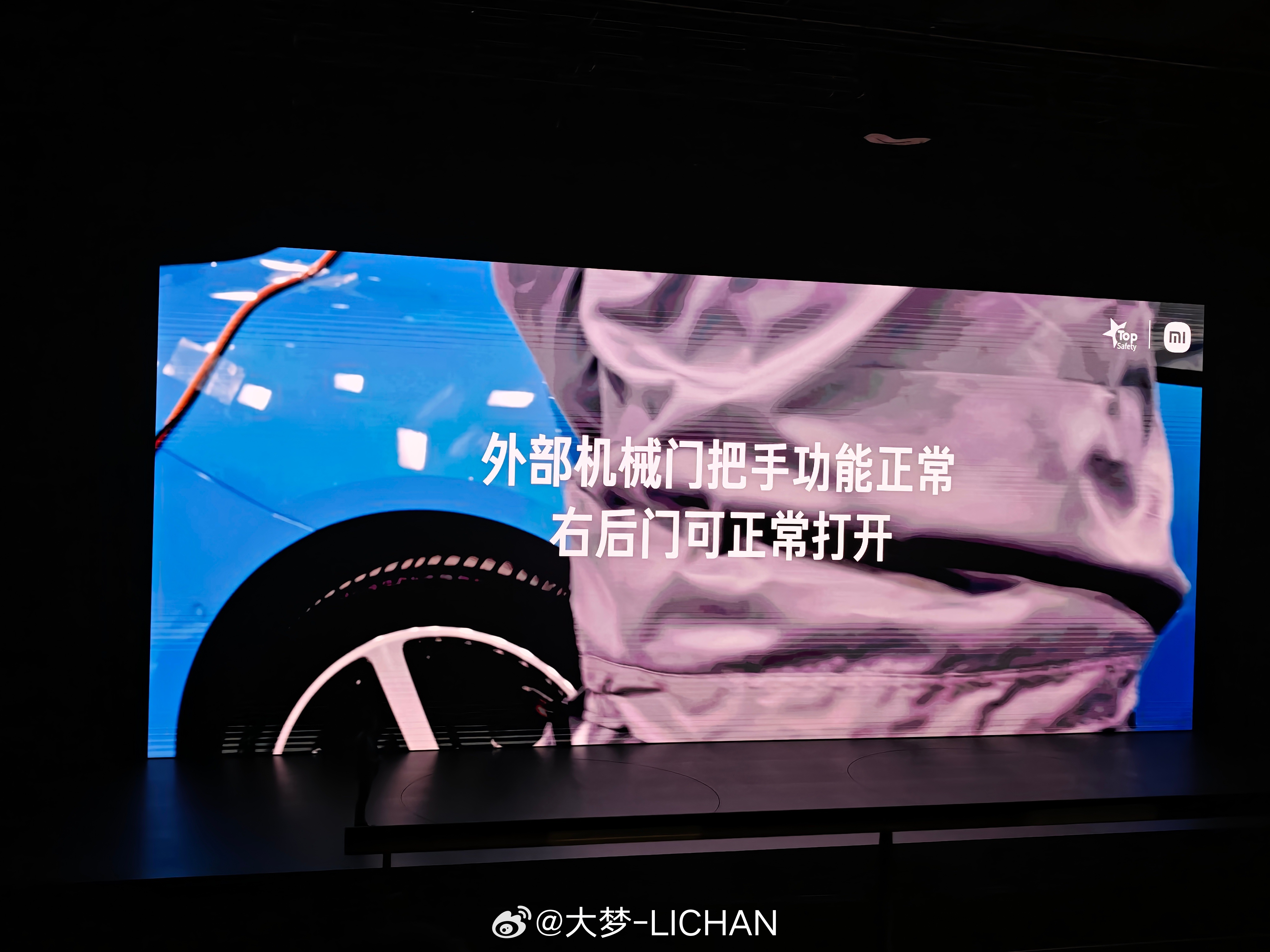 发布会上这个也太搞了,碰撞之后还手动掐掉小电瓶,然后门把手也可以正常机械打开。
