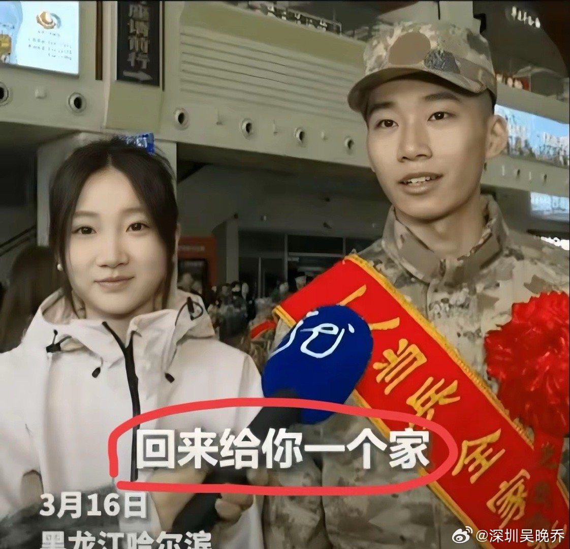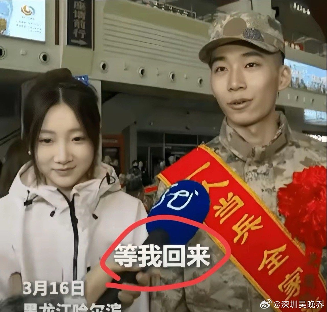人民日报点赞!哈尔滨站台上,男孩儿的一句话让全网破防!“等我回来,给你一个家。”就这一句话,让人瞬间泪目!3月16日,哈尔滨火车站。人来人往的候车大厅里,一个穿迷彩服的男孩紧紧抱着女友,两人哭得说不出话。没有滤镜,没有剧本,这一幕被路人拍下,刷爆全网。人民日报、央视新闻接连转发,话题阅读量破10亿。女孩叫李琳,22岁,哈尔滨人。那天是送男友张宇入伍的日子。出发前一周,她就忙开了:暖宝宝、家乡特产、写满叮嘱的便签,塞了满满一背包。对着镜子练了无数遍微笑,她反复告诉自己:要坚强,不能让他带着牵挂走。可当检票广播响起,张宇停下脚步,轻轻拂去她额前的碎发,说出那句承诺时,她再也绷不住了。眼泪止不住地流,咬着嘴唇想说点什么,却一个字都说不出来。两人从高中相伴,到大学相恋,三年的感情,早已融入彼此的生活。张宇从小崇拜军人,今年春季征兵,他悄悄报了名。拿到入伍通知那天,他第一个跑去找李琳,眼里的光藏都藏不住。她知道,那是他的梦想。她从未后悔支持他。军恋从不是轻松的选择。没有朝夕相伴,没有随时可通的电话,更多时候,只能靠着短暂的书信和零星的通话维系感情。可正是这份不掺假的真心,让爱情多了一份沉甸甸的责任。官方为这对普通情侣点赞,不是因为煽情,而是他们身上有当代年轻人最珍贵的品质:把小家融入大国,用青春守护山河。少年披甲赴军营守护家国,女孩含泪坚守等待爱人归家,一句承诺、一个拥抱,藏着最纯粹的爱情和最硬核的担当,这才是当代青年最好的样子!这才是最动人的青春模样。祝福他们!也祝福所有默默坚守的军恋。大家怎么看呢?欢迎评论区留言!