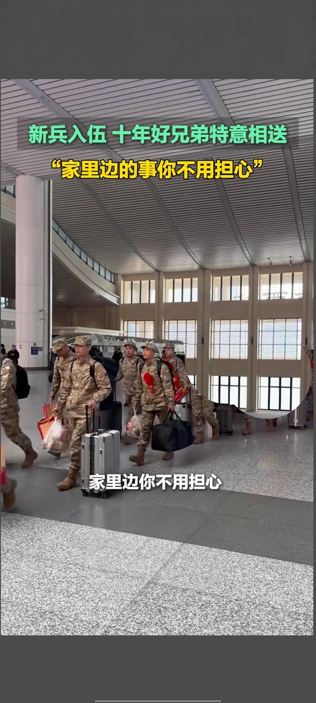 济南新兵入伍暖心一幕 十年兄弟相送解后顾之忧 2026年3月19日,山东济南迎来春季新兵入伍的重要时刻,一段暖心送别视频在快手平台引发关注,该作品播放量达3188次,记录下十年好友间的真挚情谊与热血担当。 当日,身着崭新戎装的新兵即将踏上保家卫国的征程,入伍现场满是不舍与期盼。一位新兵的十年好友特意赶到现场相送,面对即将奔赴军营的兄弟,他一句“家里边的事你不用担心”,简单质朴的话语却饱含力量,成为现场最暖心的瞬间。这短短一句话,不仅是十年情谊的见证,更让新兵放下后顾之忧,能够安心投身军旅生涯。 据悉,济南此次春季新兵入伍工作正有序开展,众多热血青年怀揣家国情怀,告别家乡与亲友,穿上军装奔赴军营。送别现场,家人与朋友的叮嘱、陪伴与祝福,成为新兵们前行的温暖后盾。这些平凡又动人的瞬间,既彰显了新时代青年参军报国的赤诚,也让“一人参军、全家光荣,一人从军、众人支持”的氛围愈发浓厚,为新兵们开启军旅新征程注入满满温情。入伍惜别 送兵感人 入伍离别