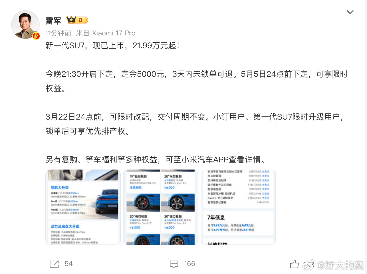 小米新SU7锁单后可限时改配,这点还是挺友好的。