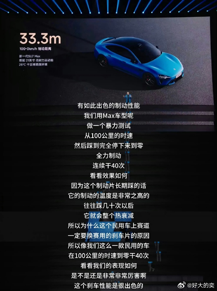 新SU7连续45脚零百制动不衰减小米发布会