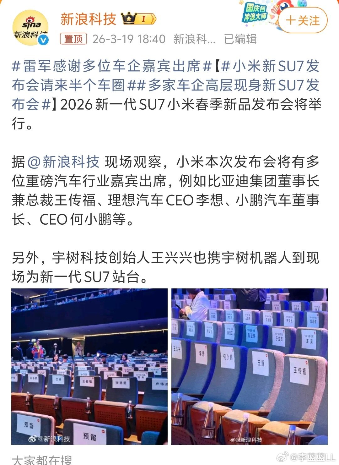 小米新SU7发布会请来半个车圈厉害了