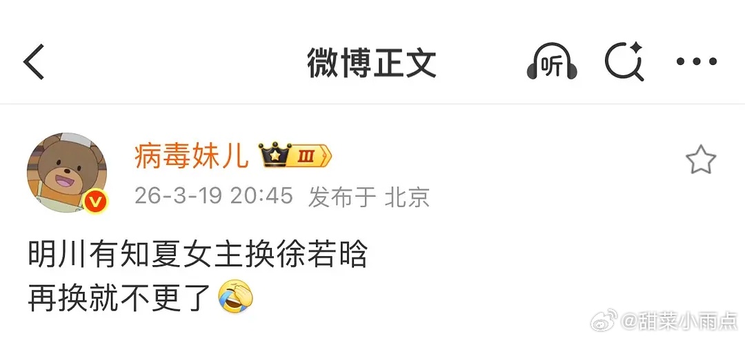 黄景瑜的《明川有知夏》女主传到了徐若晗和颂是不是开始捧徐若晗了?给的资源都挺不错的,古偶现偶民国一番二番都有…她现在的待播都跟周也一样多了,🥥这次的《你好1983》再扑怕是真要被放弃了