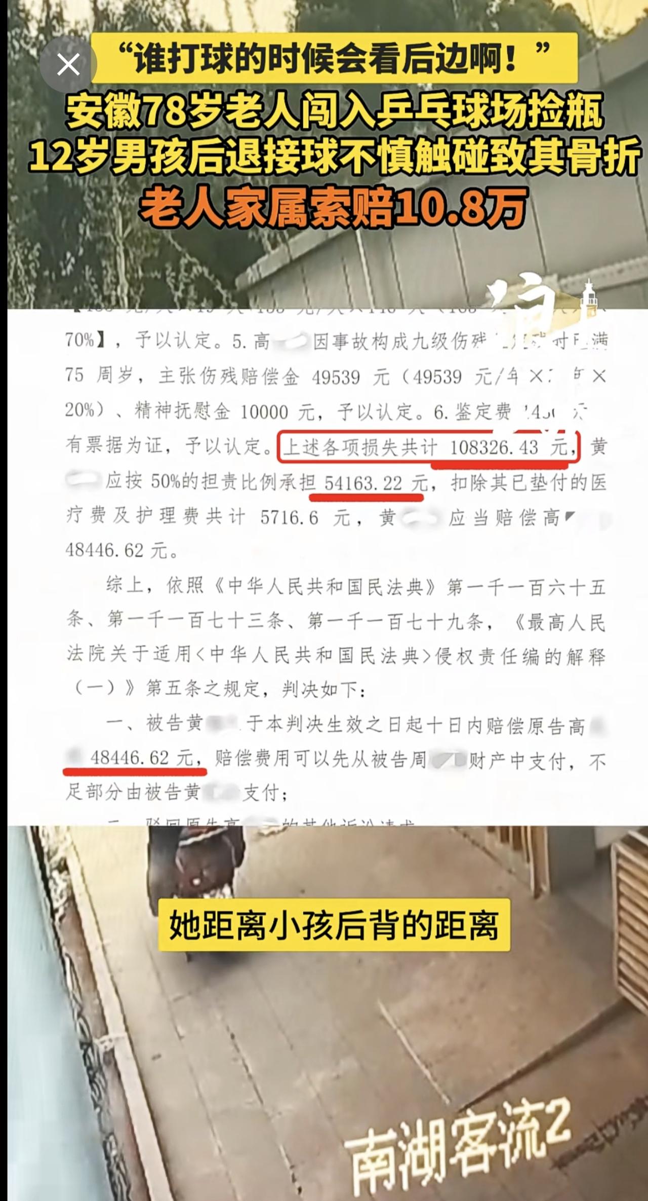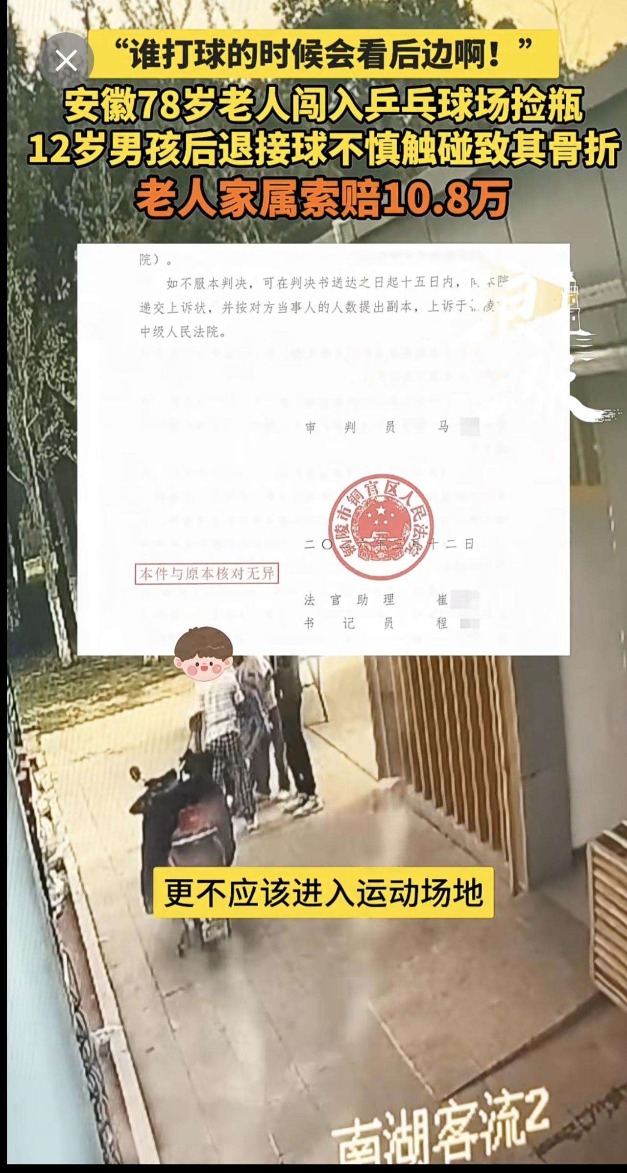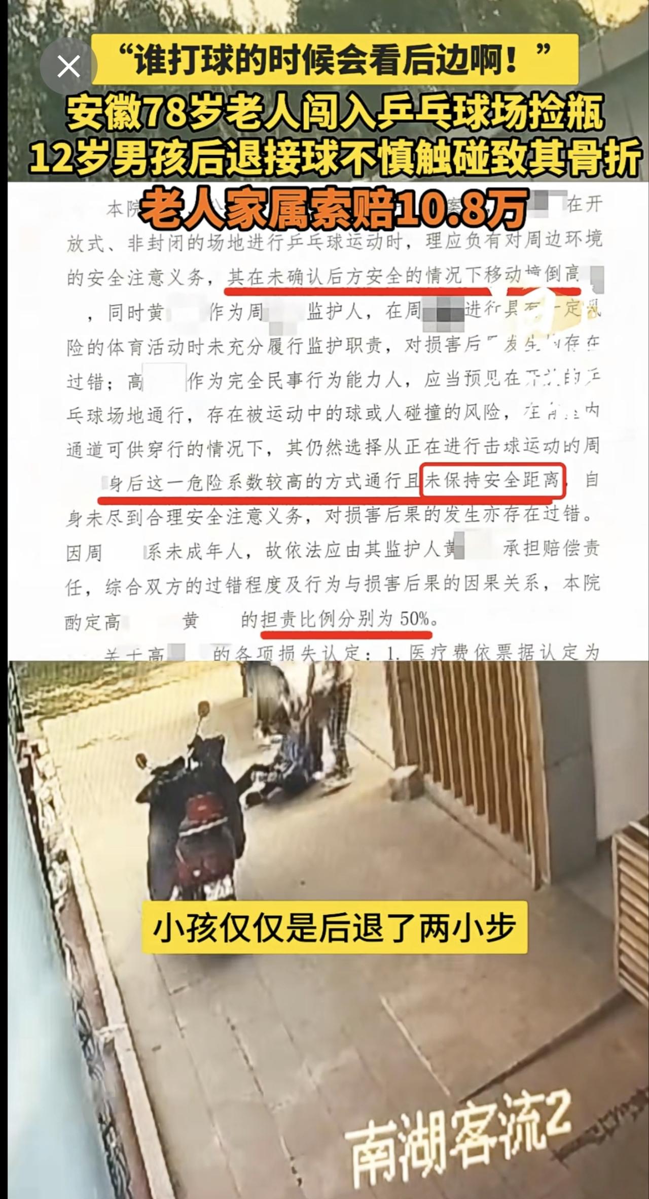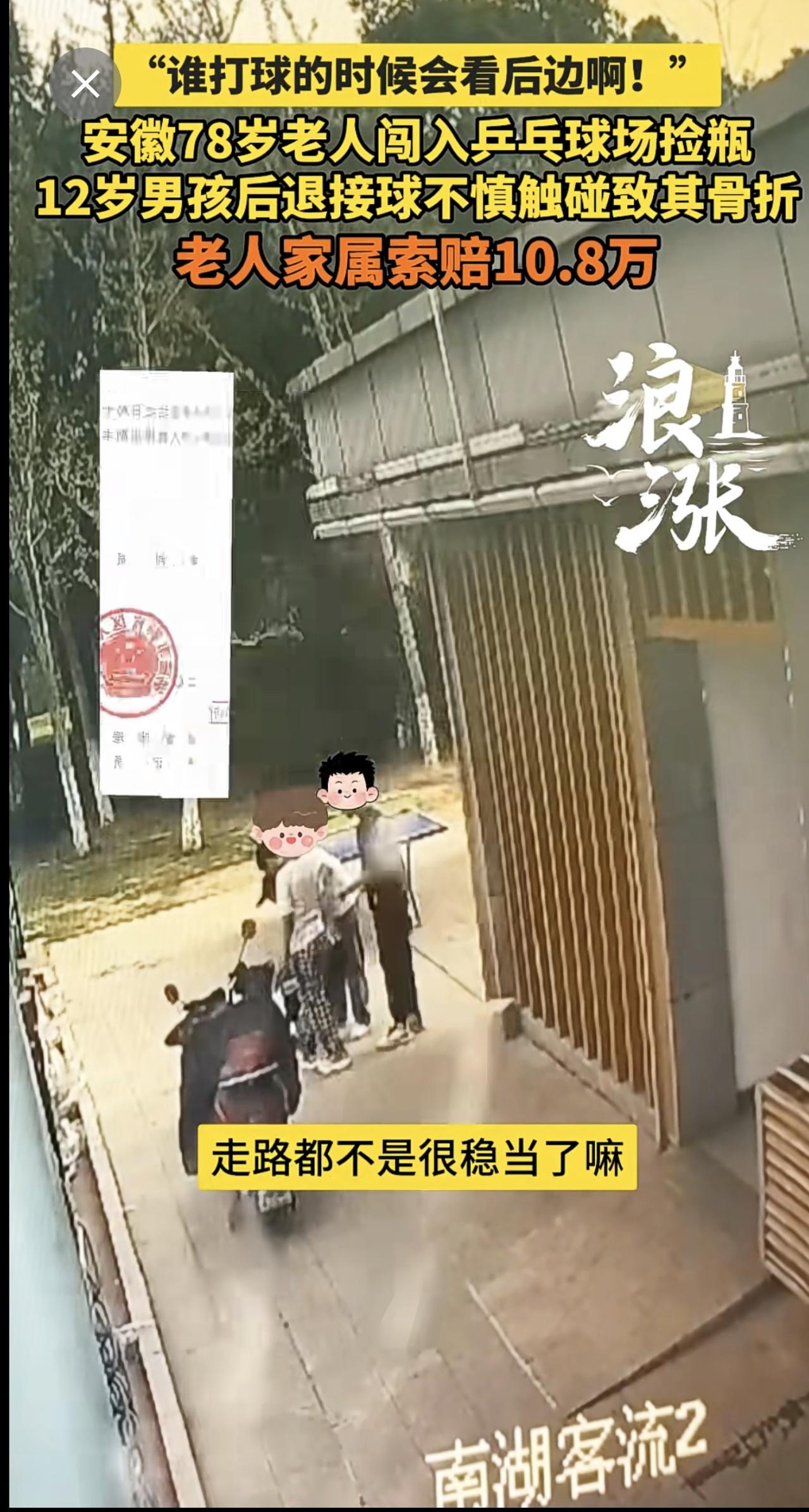 “谁打球的时候会看后边啊!” 安徽78岁老人闯入乒乓球场捡瓶 12岁男孩后退接球不慎触碰致其骨折 老人家属索赔10.8万(青岛新闻网/浪涨新闻 记者 宇鑫)安徽 78岁老人闯入乒乓球场捡瓶