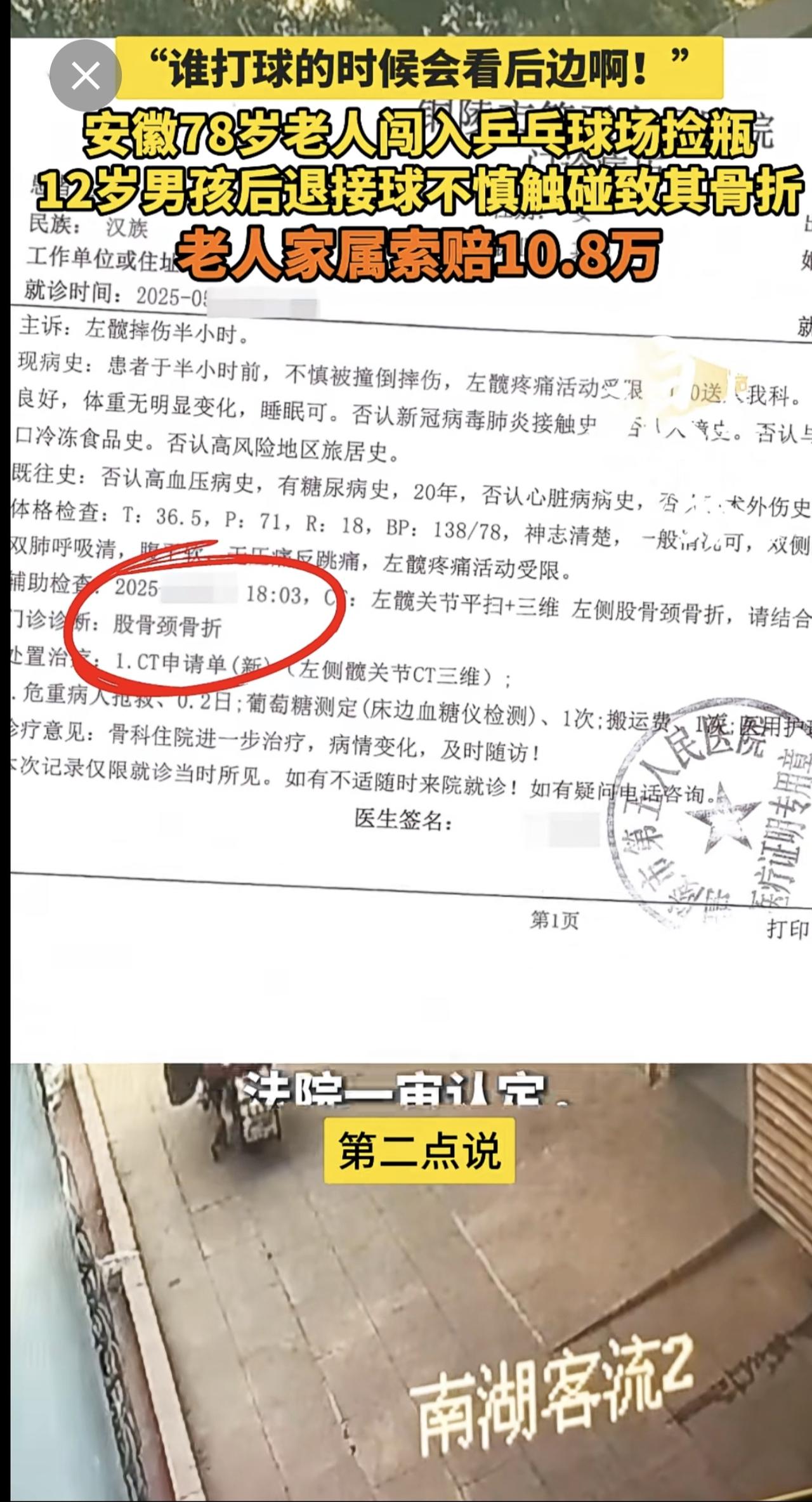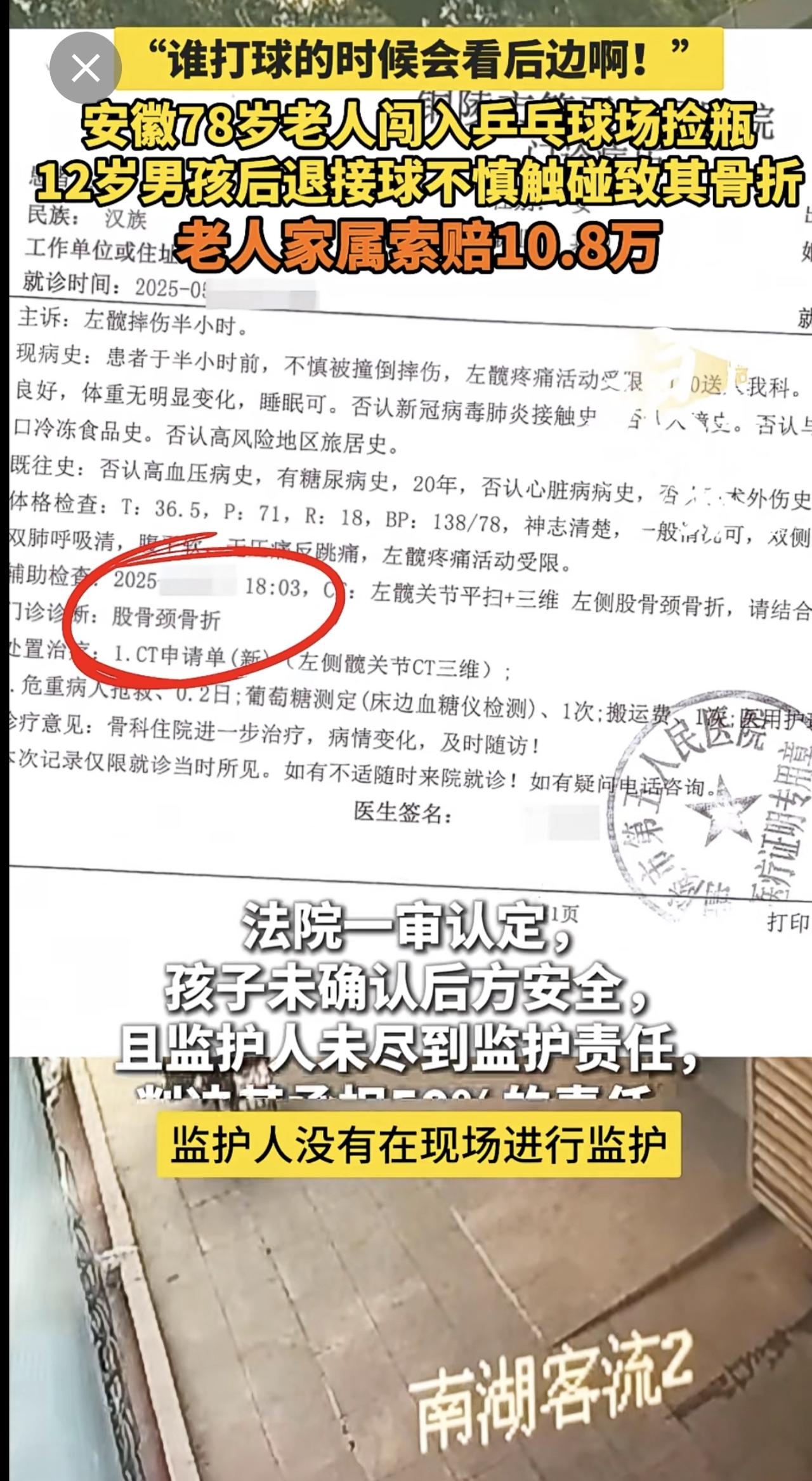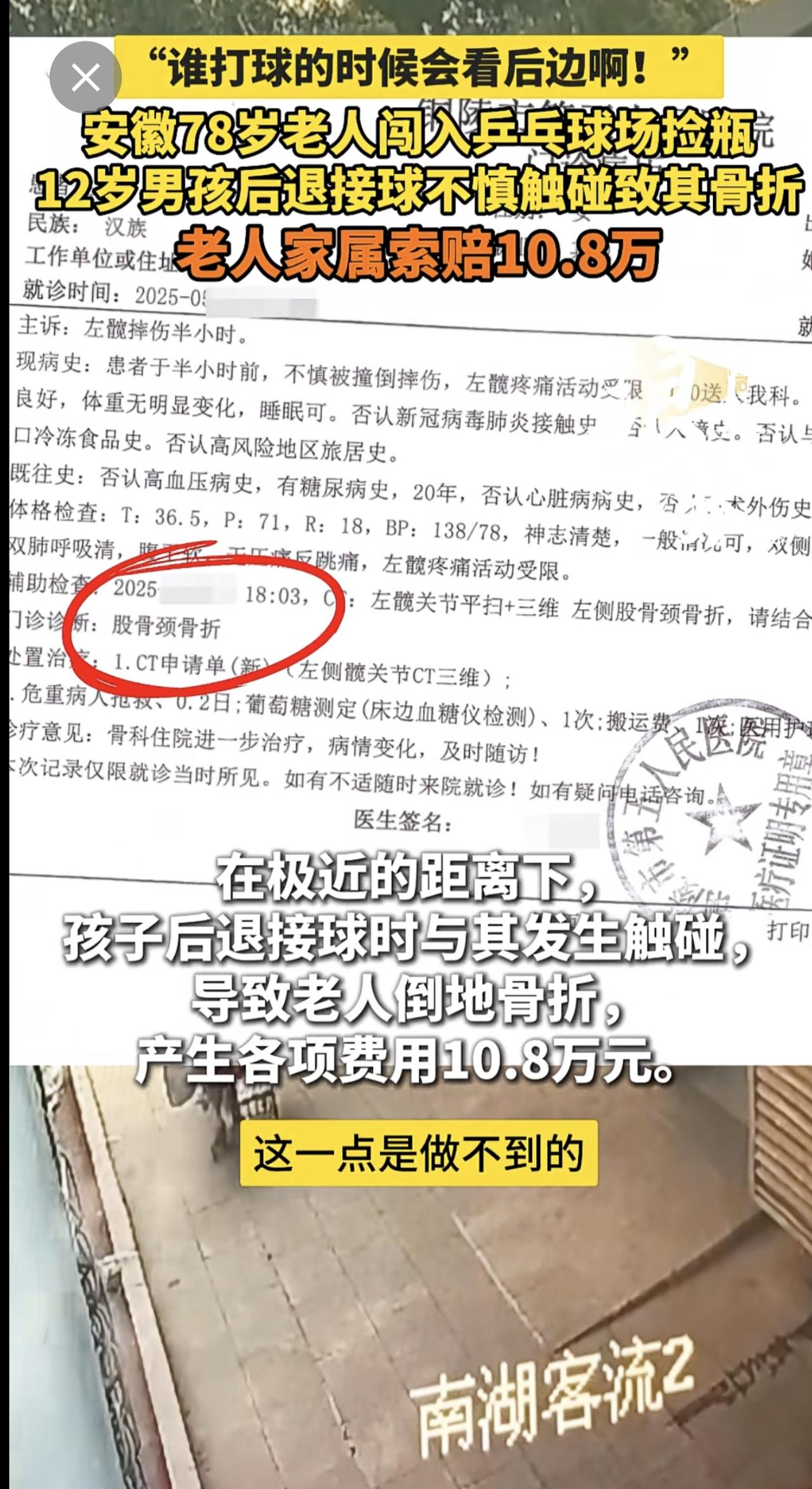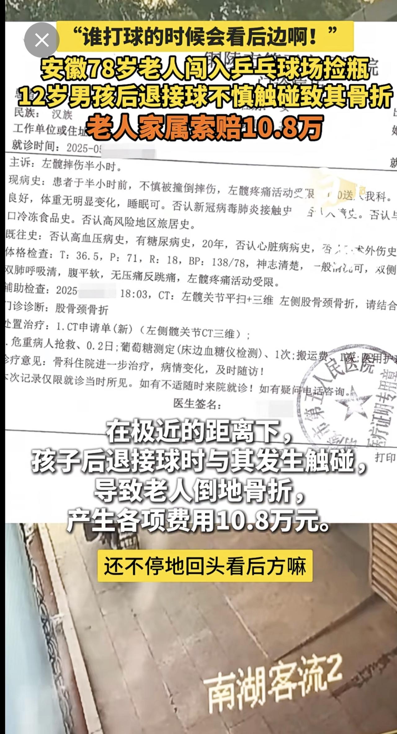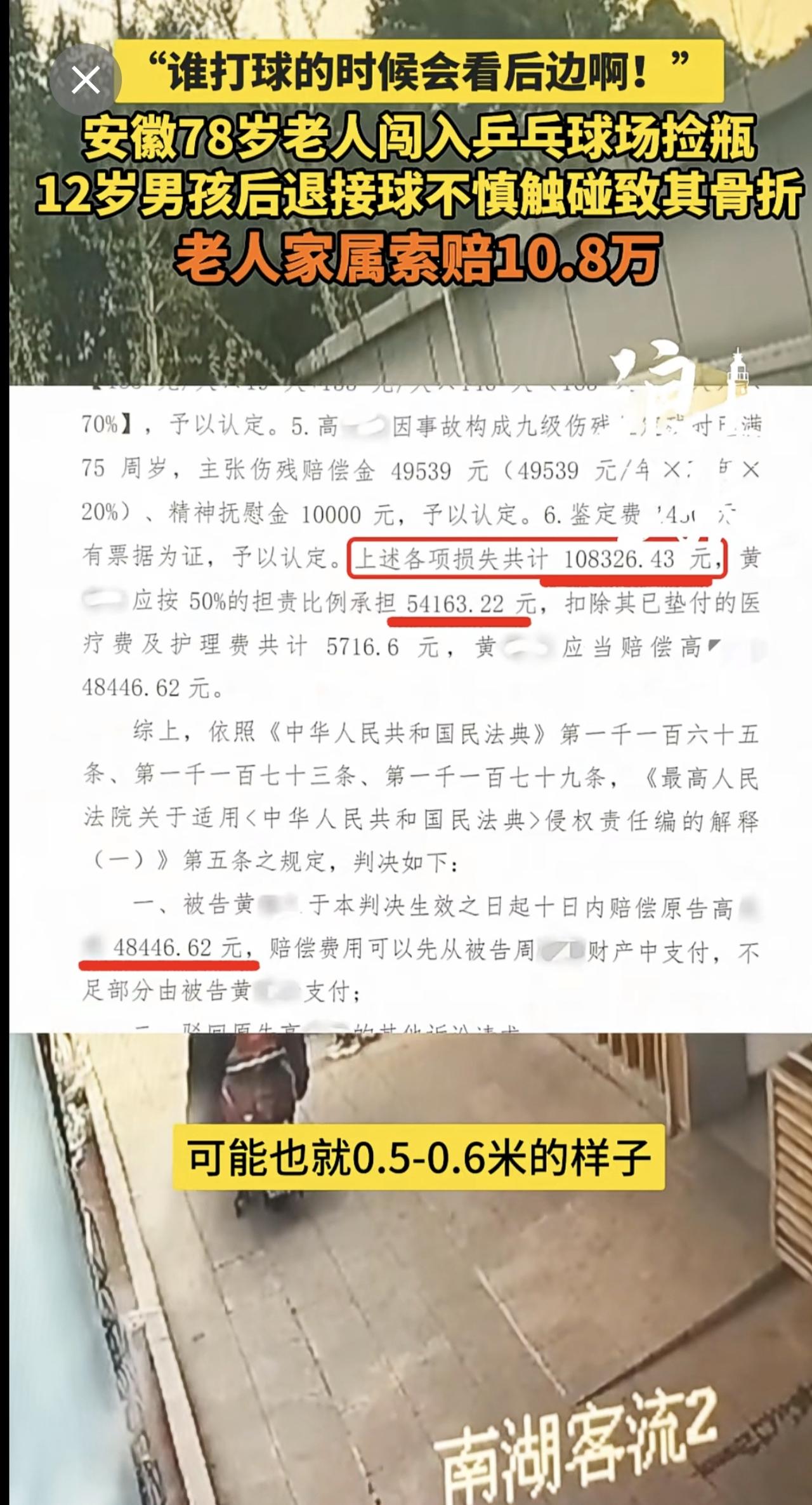 “谁打球的时候会看后边啊!” 安徽78岁老人闯入乒乓球场捡瓶 12岁男孩后退接球不慎触碰致其骨折 老人家属索赔10.8万(青岛新闻网/浪涨新闻 记者 宇鑫)安徽 78岁老人闯入乒乓球场捡瓶