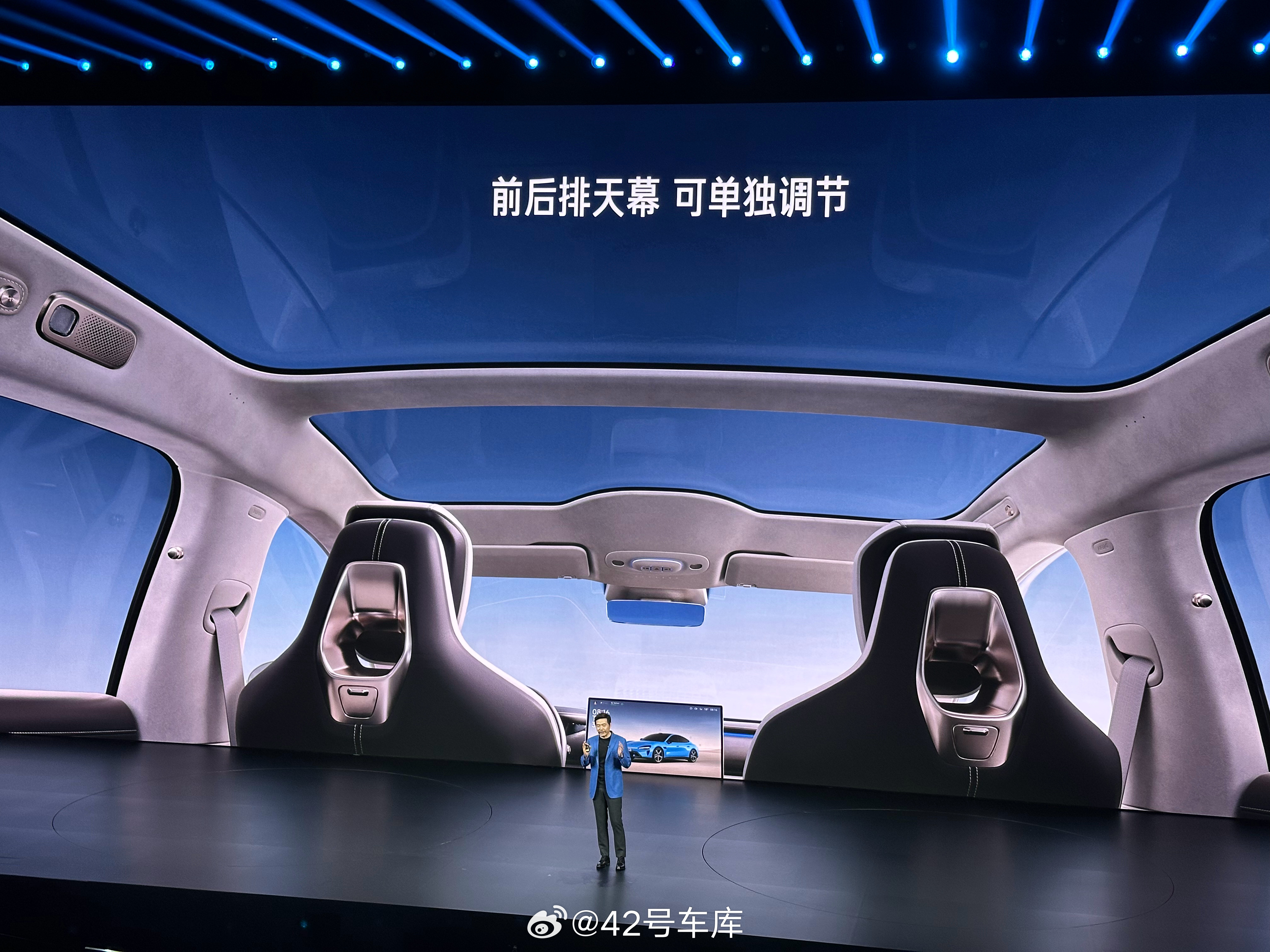 现在的 SU7 搭载了前后排单独的 EC 天幕,可以前排通透、后排隔热双分区设定。