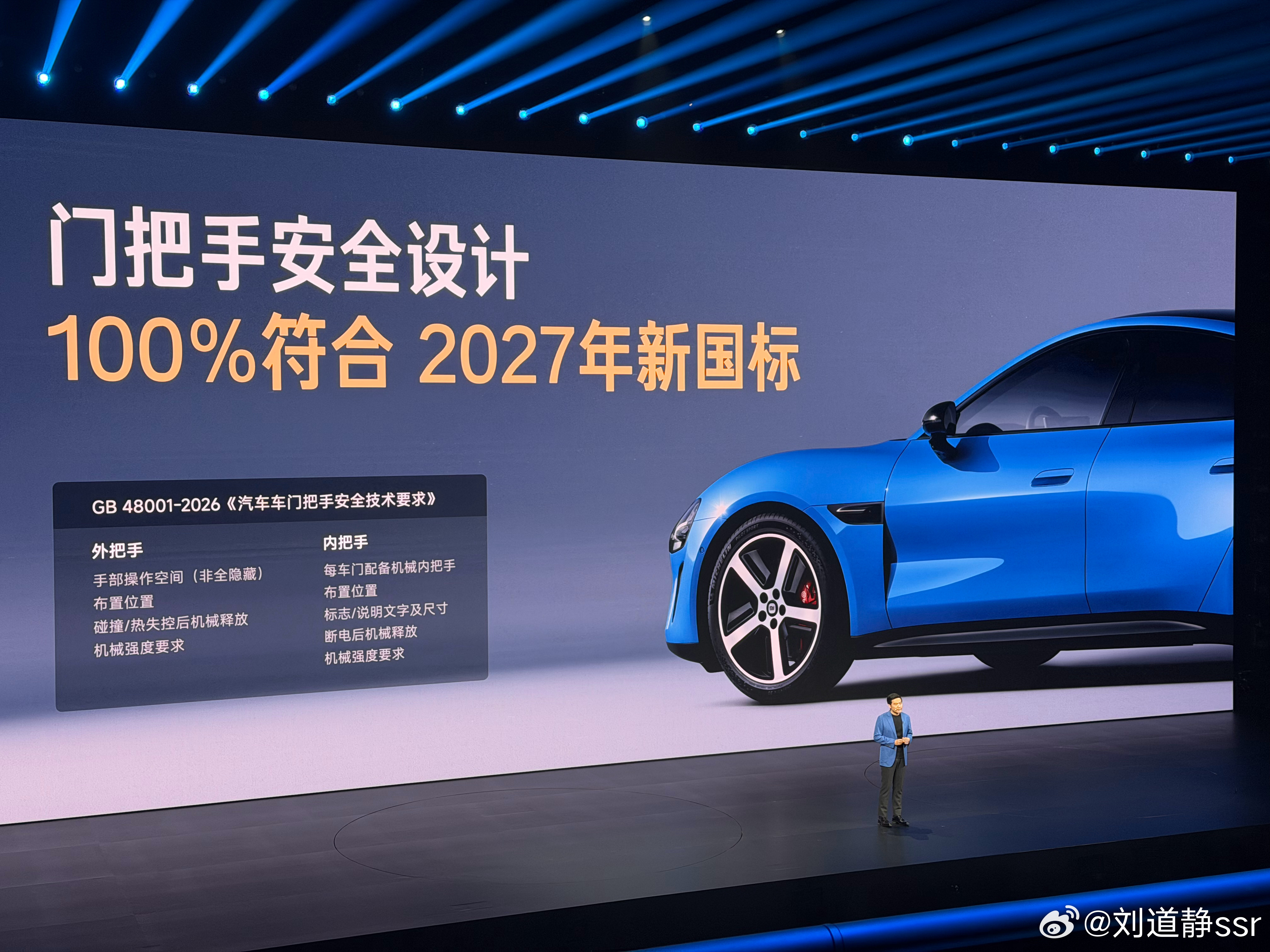 新一代小米SU7简单和大家讲一下有哪些变化~外观1️⃣新上了三种颜色 卡布里蓝 赤霞红 靛石绿电动前备箱~SU7 Ultra 同款门把手有线控(机械门把手),有备用电源在后排座椅下方内饰2️⃣方向盘换成了YU7同款 中控台布局变了后排增加了一个小屏幕增加了21寸轮毂尺寸,全系后胎宽265~副驾增零重力座椅驾驶 3️⃣动力升级V6S plus全系800伏,全系标配激光雷达 用索尔芯片!调光天幕,可以前后控制,速度更快!PRO Max标配 双腔空悬 CDC更详细的可以明天早上看我拍的实车新一代小米SU7视频哟!小米新SU7 北京·小米未来产业园