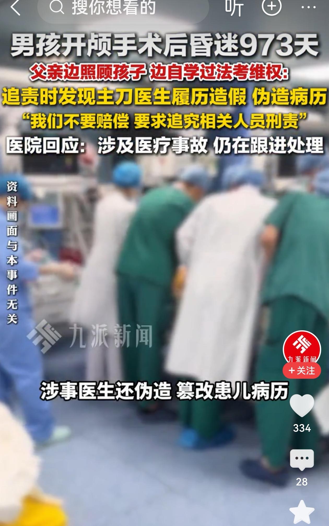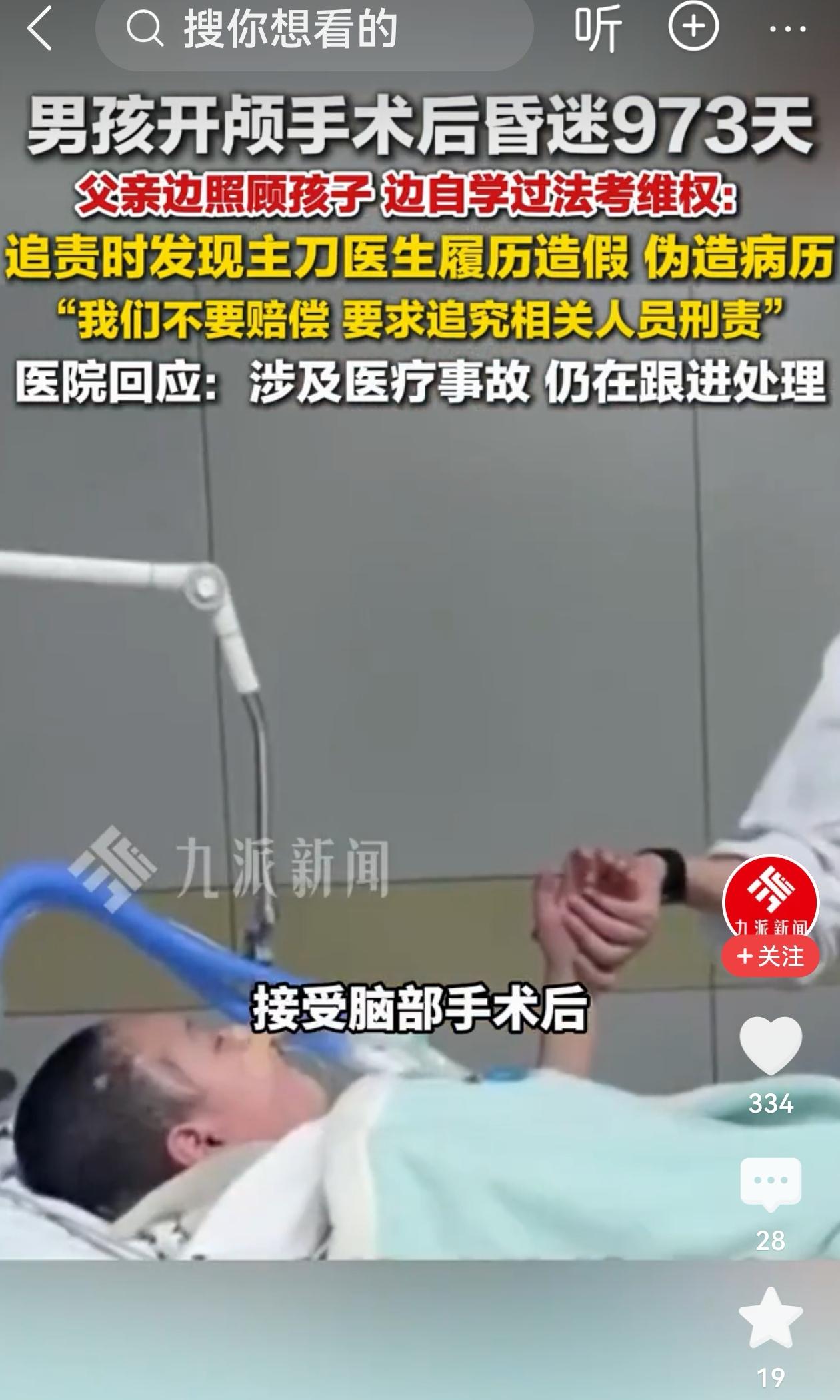 江苏无锡,16岁男孩做开颅手术后,昏迷973天。父亲追责,发现主刀医生履历造假、