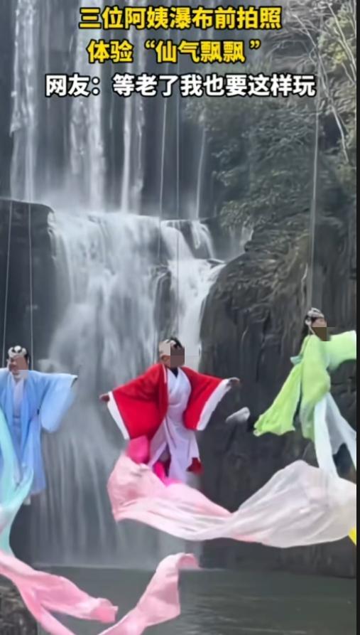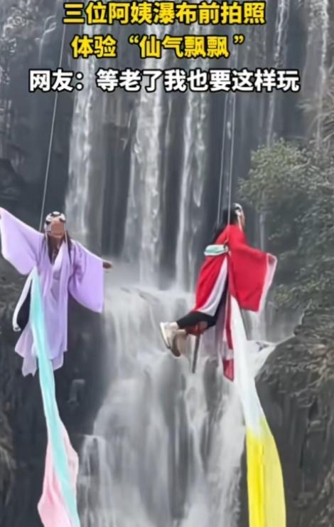 同样是吊威亚,别人是仙气飘飘,她们却是三只修炼成精的老妖蛾子。 但是,这种勇气值得让人敬佩! 显眼包又如何?人生短短数十载,开心最重要。活法是自己的,敢穿敢秀,还有姐妹陪着一起疯一起闹,这份松弛感和勇气,真的比什么都难得。 人活一辈子,能这样尽兴、自在、开心,比端着架子强太多了。 只要自己开心,不打扰别人,怎么活都值得点赞,必须支持这群可爱的阿姨们!
