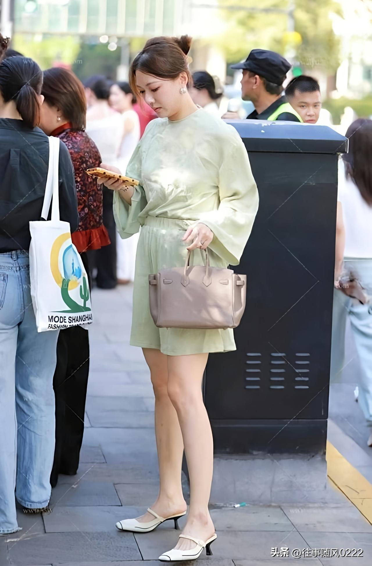 优雅绿裙穿搭,清新自然,时尚随拍