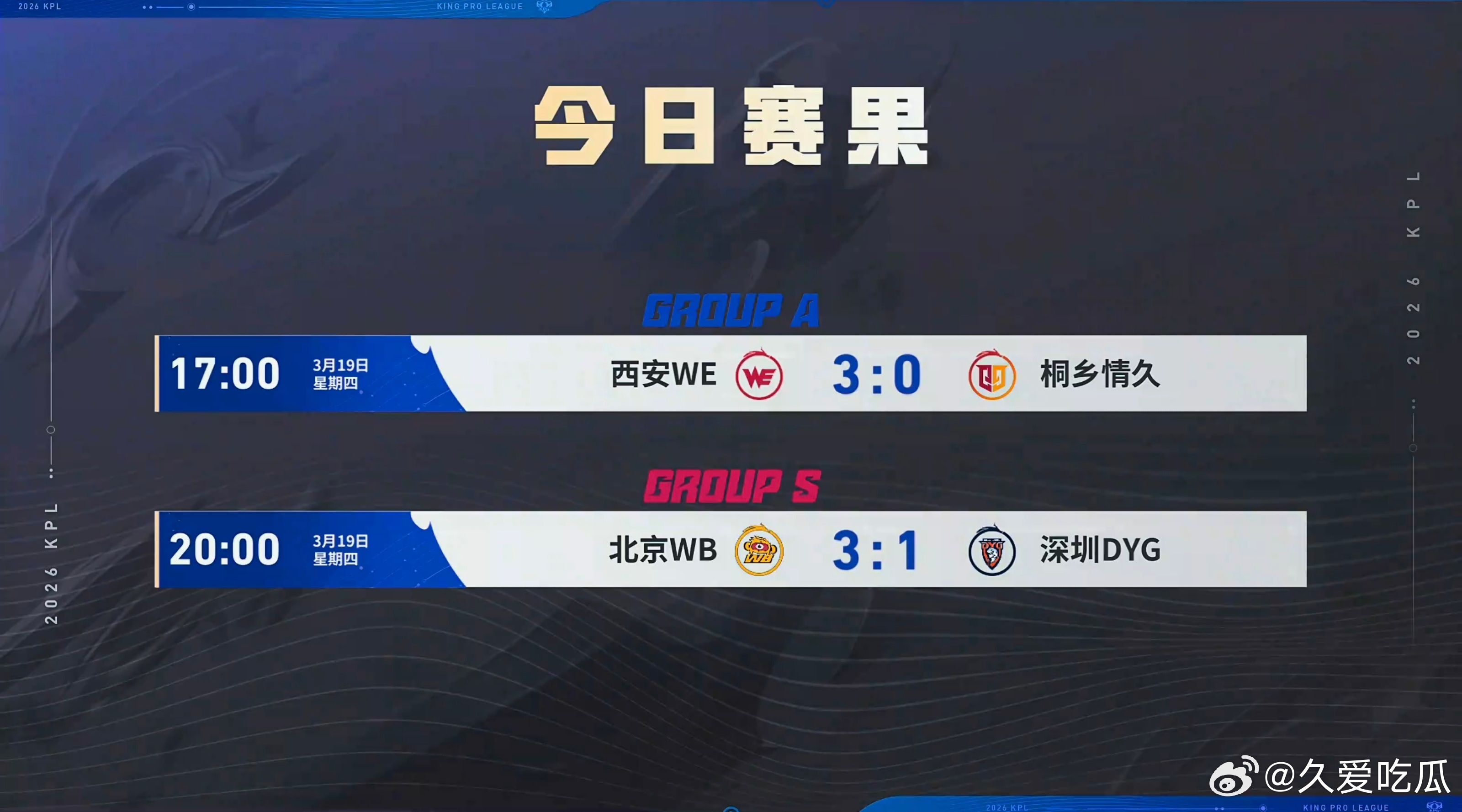 2026kpl春季赛 今日赛果
