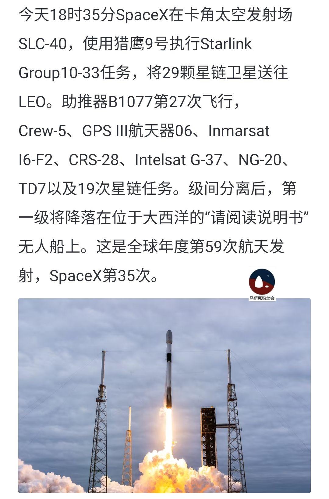 截止3月19日, spacex完成了35次发射任务。