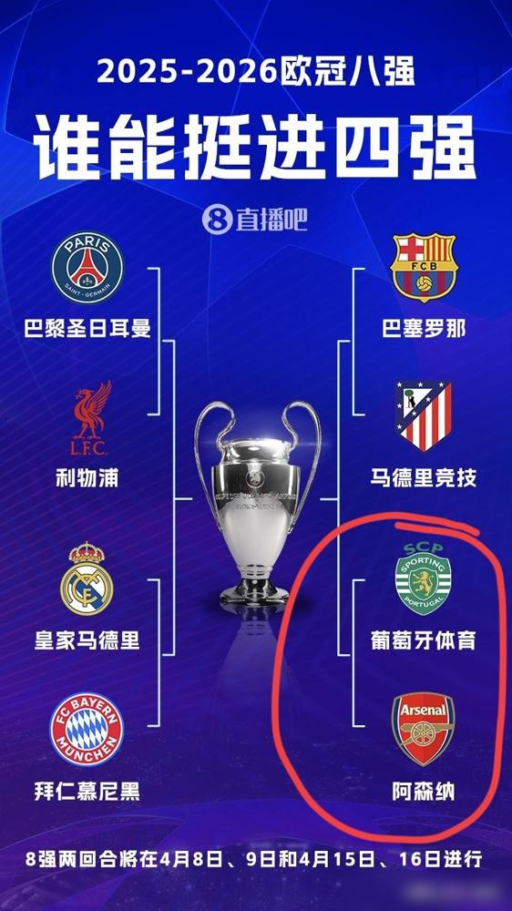 有人虚构欧冠8强对阵,吹葡萄牙体育是黑马,还警告阿森纳别大意。顺带踩英超多伪豪门
