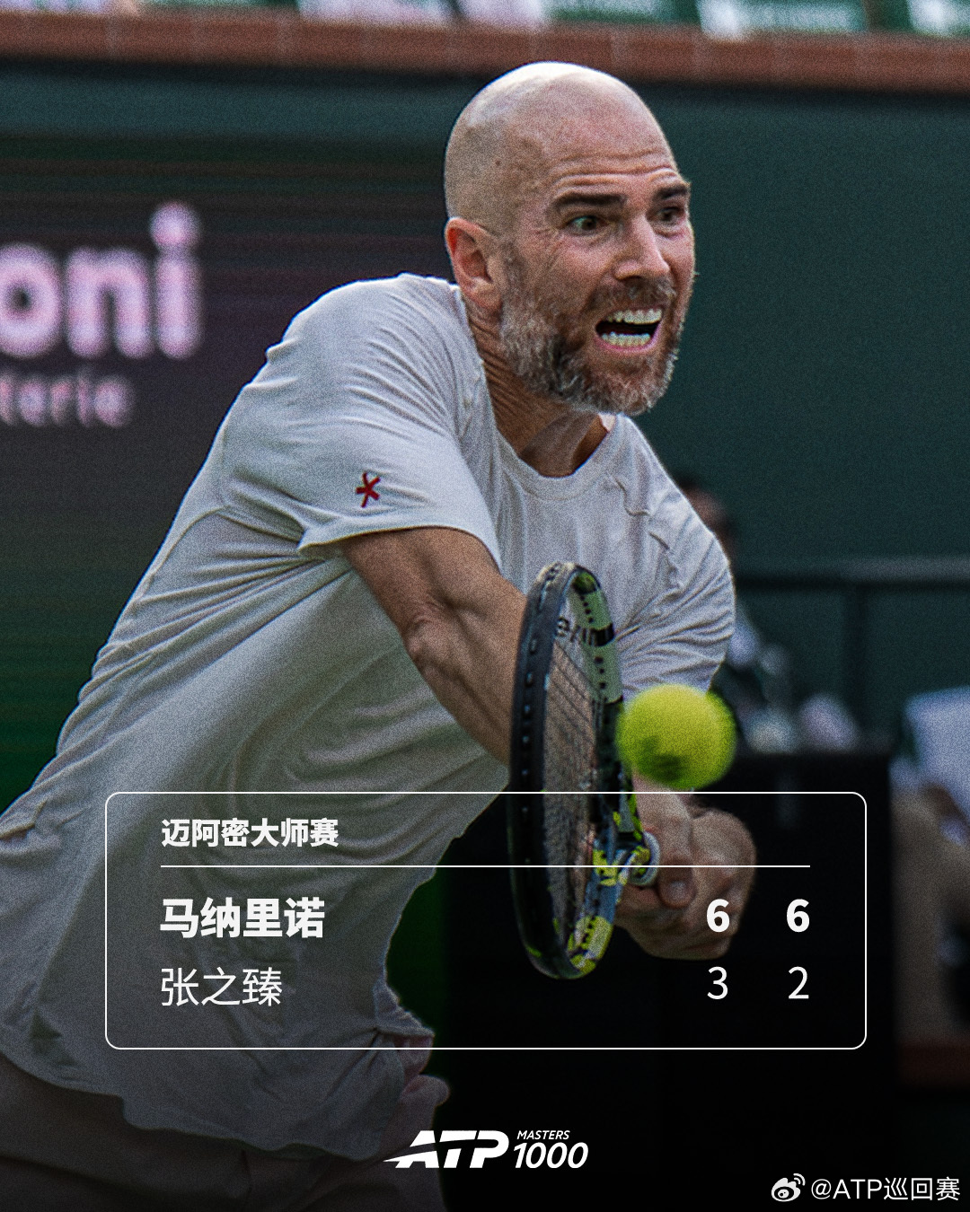 贝雷蒂尼成功晋级💪ATP1000迈阿密大师赛首轮,前TOP10贝雷蒂尼以6-