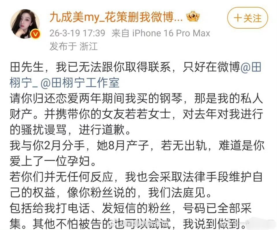 九成美还挺刚,反诉侵权了! “若无出轨,难道是你爱上了一位孕妇”