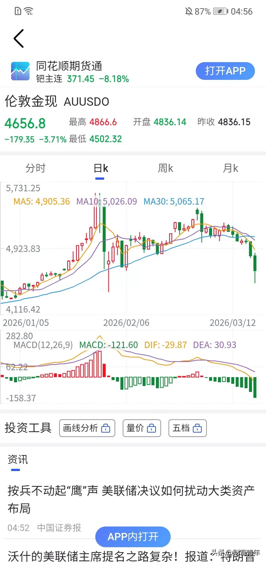 妈呀,半夜全球黄金杀疯了,180点继续大跌,从5500美元杀到4600美金是什么概念?!!如果你是持有黄金,意味跌幅已经20%。! 黄金本来是抗通胀的,但一切逻辑都比不上市场情绪,看来中东或者美国很多资金都在做空黄金。看来贵金的不稳定啊,那么钱去哪?!。黄金价值分析 黄金后市分析