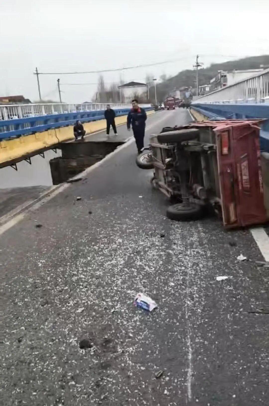 突发!山东费县一大桥被货车直接压塌!桥面砸穿大洞,1人受伤,官方通报来了 3月19日,山东费县官方发布通报,一起货车压塌桥面的惊险事故引发全网关注,现场画面触目惊心! 3月18日13时许,一辆外地牌照重型厢式半挂车,行驶至费县田石路大王庄桥路段时,竟直接将桥面压塌,桥面瞬间破出一个大洞,建筑材料坠入河中,激起巨大水花,场面十分吓人。 监控视频显示,事发时桥下还有人划船经过,所幸距离较远,并未被波及。对向车道一辆红色三轮车因桥面坍塌受影响侧翻,三轮车司机轻微受伤,大货车司机无大碍。 费县联合工作组初步核查确认:事故原因系涉事货车严重超载! 事发后,当地立即封闭桥梁、救治伤者、排查次生隐患,并成立专项组展开全面调查。目前,伤者已送医治疗,桥梁修缮工作同步启动,相关责任人将被依法依规严肃处理。 有网友表示:超载猛于虎,不仅毁路断桥,更威胁路人安全,必须严惩!也有市民关心桥梁质量问题,官方表示,具体细节以最终通报为准。 一次超载,差点酿成大祸!道路安全、桥梁安全,容不得半点侥幸。 山东费县 货车压塌桥面 严重超载