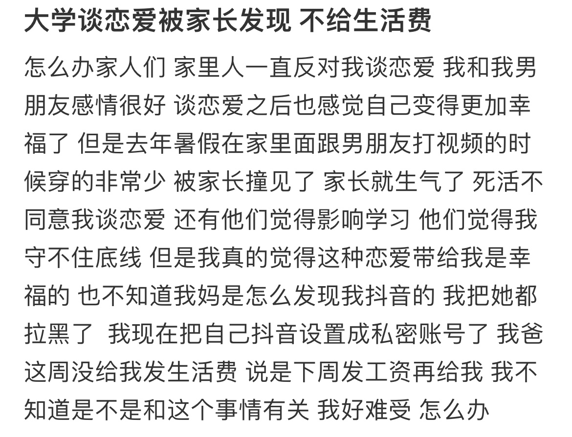 大学谈恋爱被家长发现 不给生活费