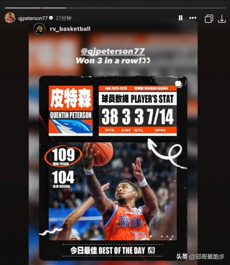 昨晚看到了福建的小外援皮特森出色表现,带领福建逆转北京!38分!其中三分球14投7中!生生的投死北京!多么馋人啊! 想想我们大山东!财大气粗,愣是找不到出色的小外,放眼整个联盟,也只有山东没有合格的小外!能投三分鲍威尔走了!来了一个只会突破的约翰逊!如果当初山东拿下皮特森这不牛逼了!皮特森 北京北汽