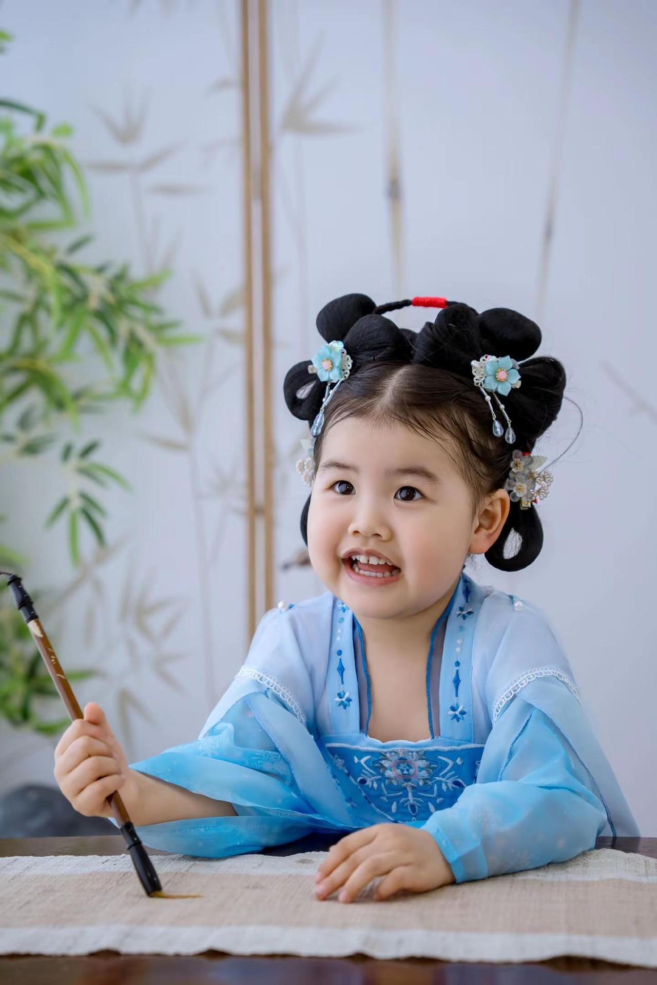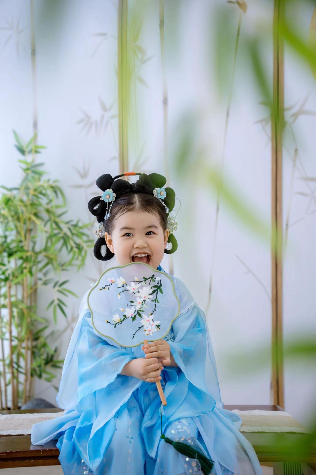 ✨是谁家小仙女儿下凡啦!😜穿汉服嘟嘴也太萌了吧~🥰手持团扇古灵精怪,心都要化