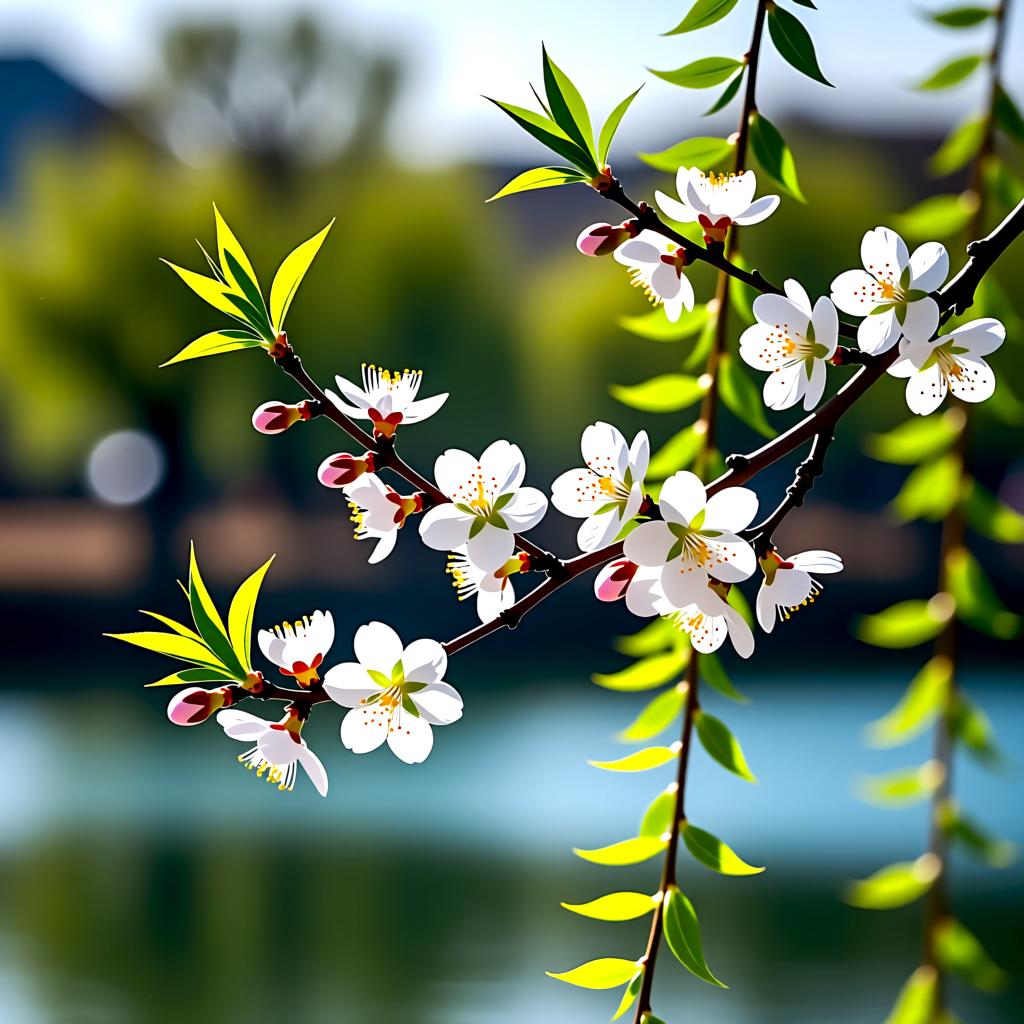 就在这朦胧的晨色中,百鸟齐鸣,奏响了春日最动人的乐章。屋檐下,几只燕子呢喃细语,似乎在商量着新巢的方位;枝头上,黄鹂清脆啼叫,声音婉转如流水,划破了清晨的宁静;远处林间,不知名的鸟儿此起彼伏地应和,汇成一片喧闹而欢快的交响。它们的歌声不再是冬日的稀疏零星,而是充满了蓬勃的生命力,仿佛在互相呼唤:春天来了,快醒来吧! 随着鸟鸣声渐密,东方的天际渐渐染上了一层金红,太阳缓缓升起,金色的阳光洒满田野。冰封的溪流开始解冻,潺潺水声与鸟鸣相映成趣;枯黄的草皮下,嫩绿的新芽正努力顶破土层,争先恐后地探出头来。田间地头,农人扛着犁耙走向田野,脸上洋溢着对丰收的期盼。孩童们也在巷口奔跑嬉戏,笑声惊起了草丛中的几只麻雀,扑棱棱飞向蓝天。 这一刻,万物复苏,春意盎然。二月二的晨光不仅照亮了山川河流,更唤醒了人们心中对美好生活的向往。在这鸟语花香的早晨,大自然以其独有的方式宣告:寒冬已逝,暖春将至,一切都在向着希望生长。