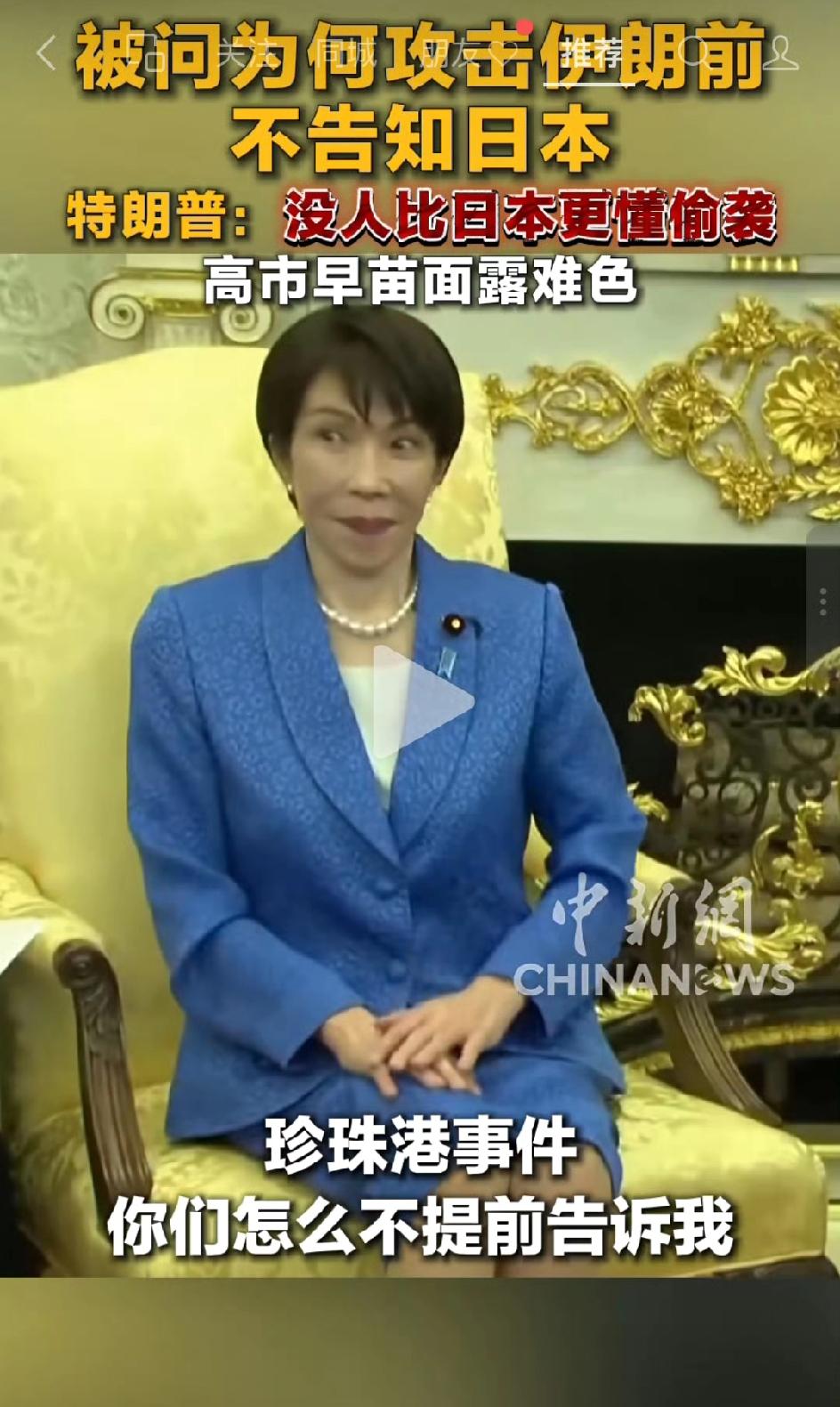 特朗普:日本偷袭珍珠港也没有通知我们——高市早苗访美名场面,现场一日本记者提问特朗普,你在攻击伊朗之前为什么不提前通知欧洲和亚洲的盟友,比如日本,作为日本人我们很困惑。 特朗普当着高市早苗的面说:因为我们想要惊喜,谁比日本更懂惊喜,你们不也没事先告诉我们珍珠港的事吗? 高市早苗的眼神都能把那个记者给刀了。