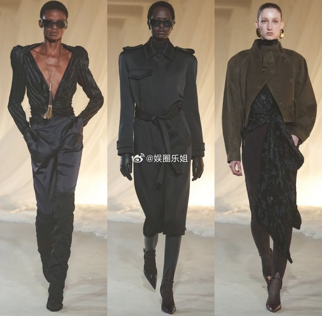 更内敛的剪裁与轮廓暗黑、流动的性感风格灵感源自40年代Pierre Balmain初创时期被评价为“Haider Ackermann式感性”+“Khaite式暗黑美学”
