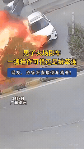 看着就急人!男子火场挪车,一番操作后,可惜还是被烧! 3月8日广东潮州一场火场挪车事件引发热议。当时路中车辆起火,火势迅速蔓延。一辆白色小车处于危险区域,本只需倒车几米就能避险。可车主先绕到车后,上车后还不倒车,偏要掉头,把车头转向火场方向,一番折腾后,结果起火车辆火苗蹿升,小车瞬间被火包围。 网友们看得干着急,有人吐槽车主选了“火烧事故车”,也有人说他应急失误、脑子空白。这事儿给大家提了个醒,面对火情,冷静判断和正确操作太重要了,盲目操作只会让损失更大。