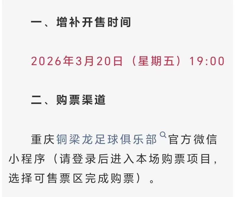 川渝德比一票难求,昨天重庆铜梁龙俱乐部官方针对球队抢不到票的问题对外发文,这场比赛有超过10万人预约抢票,但是重庆龙兴体育场可用的座位只有48000个左右,所以导致很多球迷没抢到票,所以俱乐部对于没抢到票的球迷表示歉意,不过20号晚上19:00,俱乐部还会发售少量余票,所以有需要的球迷可以抢抢试试,万一能抢到票也说不定!