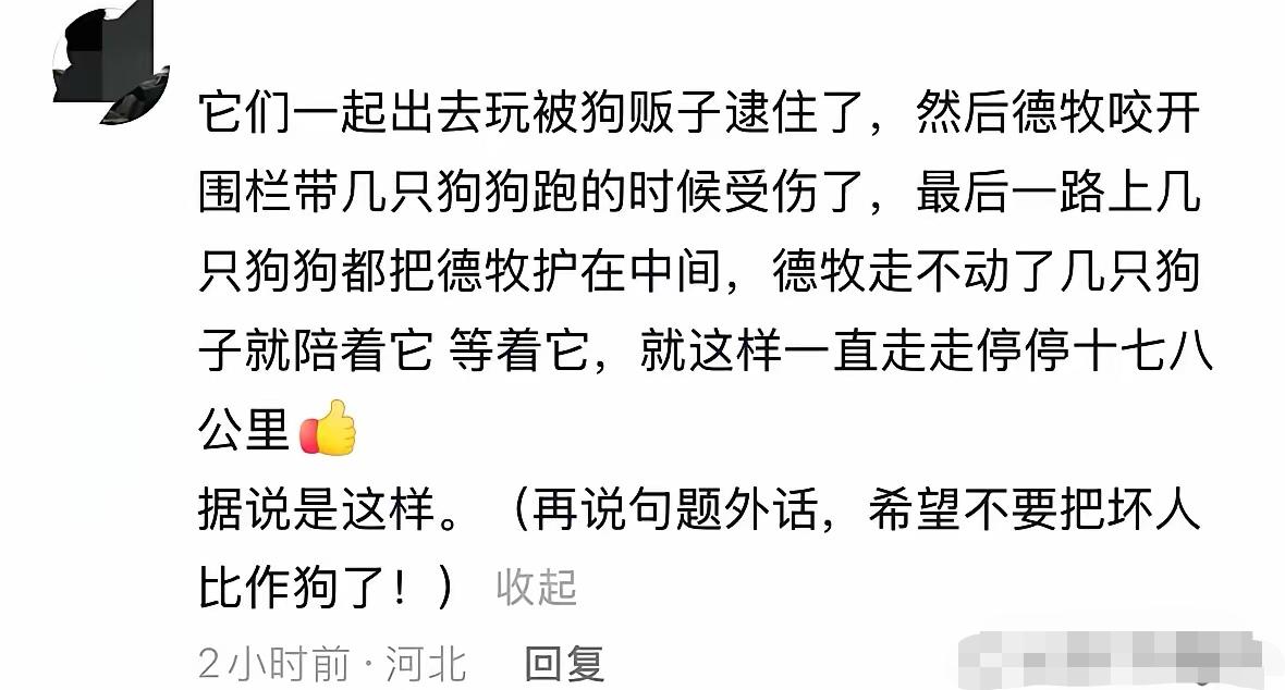 结伴走17公里回家的狗狗里,最让我感动的是那只柯基!它的名字叫大胖,在整个行程中,它几乎是一步一回头,关注着德牧的动向! 直到看到这个视频,我才知道,原来狗狗也有着非常深刻的情感。 这段视频在社交平台被很多网友转发,几只狗狗结伴跋涉17公里回家的画面本就足够暖心,柯基大胖的举动更是直接戳中了无数人。柯基本身是小型犬,腿短体力有限,17公里的路程对它来说,远比身边体型健壮的德牧要吃力得多,可它从来没有只顾着自己往前赶路。 大胖的每一次回头都不是无心之举,而是时时刻刻惦记着身边的伙伴。它知道自己和德牧一起出发,不想让同伴落在后面,更怕在漫长的路程里和对方走散。很多人都觉得狗狗只有简单的吃喝玩耍需求,没有细腻的心思,更不懂什么是牵挂,大胖的这些举动,真的打破了很多人的偏见。 现实里有不少人,把宠物当成一时的消遣,开心的时候就亲近陪伴,没耐心了就随意冷落,甚至弃之不顾。他们总觉得动物没有复杂的情绪,不会难过失落,也不懂依赖陪伴,其实这种想法真的有点太片面了。我们总觉得人类的情感最珍贵,却常常忽略身边小动物那份毫无保留的真心。 很多人养狗养猫,可能都没发现,它们的感情真的很细腻。大胖和德牧之间的情谊,不是靠食物换来的讨好,也不是人为训练出来的动作,是长期相处慢慢积攒下来的信任。17公里的路,大胖本可以中途休息,或是跟着路人寻求帮助,可它始终守在德牧身边,一步一回头的坚持里,藏着最纯粹的陪伴。 网友们的评论里全是对大胖的夸赞,有人说自己养了多年宠物,才真正读懂小动物的重感情;也有人说,比起一些人的虚情假意,狗狗的陪伴反而更让人安心。大家之所以这么有共鸣,就是因为这份情感不掺任何杂质,足够真实也足够动人。 我们养宠物,不该只享受它们带来的快乐,更要正视它们的情感需求。狗狗会记得同伴的陪伴,会惦记身边的伙伴,会用自己的方式守护在意的对象,它们的情感直白又坚定,没有半点虚情假意。 别用冷漠的眼光看待小动物,它们不是没有情绪的玩偶,它们懂陪伴,知牵挂,会用一生的时间,守护自己认定的伙伴和主人。大胖的举动不只是狗狗之间的暖心互动,也在提醒我们,要善待每一个陪伴在身边的小生命,珍惜它们毫无保留的信任与爱意。 各位读者你们怎么看?欢迎在评论区讨论。