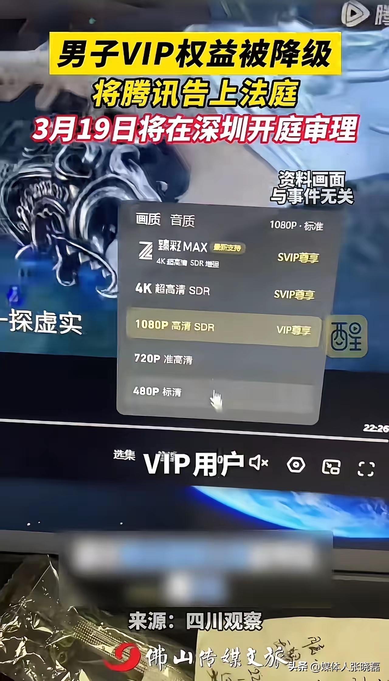 男子一口气买了几年的影视VIP会员,没想到平台新增SVIP服务,导致他的权益被降级!男子:“本来VIP就能享受4K画质,现在SVIP才能享用,凭什么让我多掏钱!”男子怒将影视平台告上法庭! 有网友表示:这个好像是广电的要求,电视端VIP必须要单独列出来,不能与手机端和PC端通用,不然影响人家广电和运营商开通IPTV。 音乐APP也挺恶心的,以前买磁带买碟,那是一次性交易,只要磁带碟没坏,可以一直听歌,现在的那些App就算交了会员,下载歌曲都听不了。 所有视频平台都是这样,必须联合起来反对。您可以涨价,但是需要保留老会员的应得的权益,对新会员涨价可以,必须保留老会员权益。 问题在于这种情况打赢官司对平台有没有严厉惩罚,如果没有而仅仅象征性补偿整改就完全起不到警示效果。 问题是,这官司就算腾讯输了,也只是轻飘飘补偿权益给原告,对他们来说并没有什么损失,这样的法制也就造就了这些企业一直都这么黑心。 对此大家怎么看呢