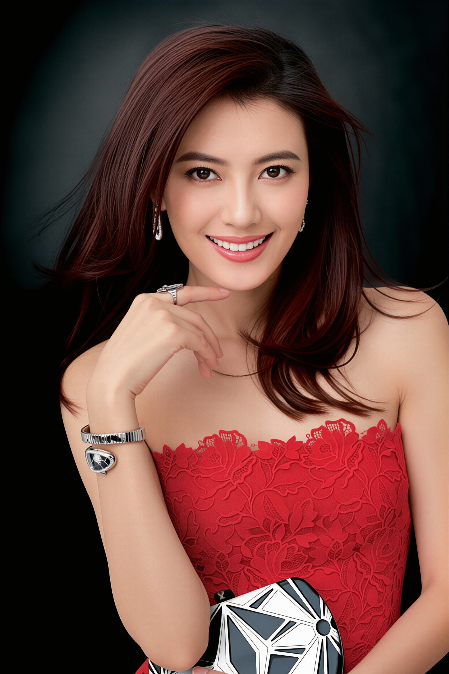 高圆圆 身着红裙时,自带一种明艳又舒展的东方美感。蕾丝抹胸勾勒出优雅肩线,酒红卷发衬得眉眼温柔明亮,笑起来时梨涡浅浅,既有成熟女性的从容大气,又藏着少女般的灵动鲜活。