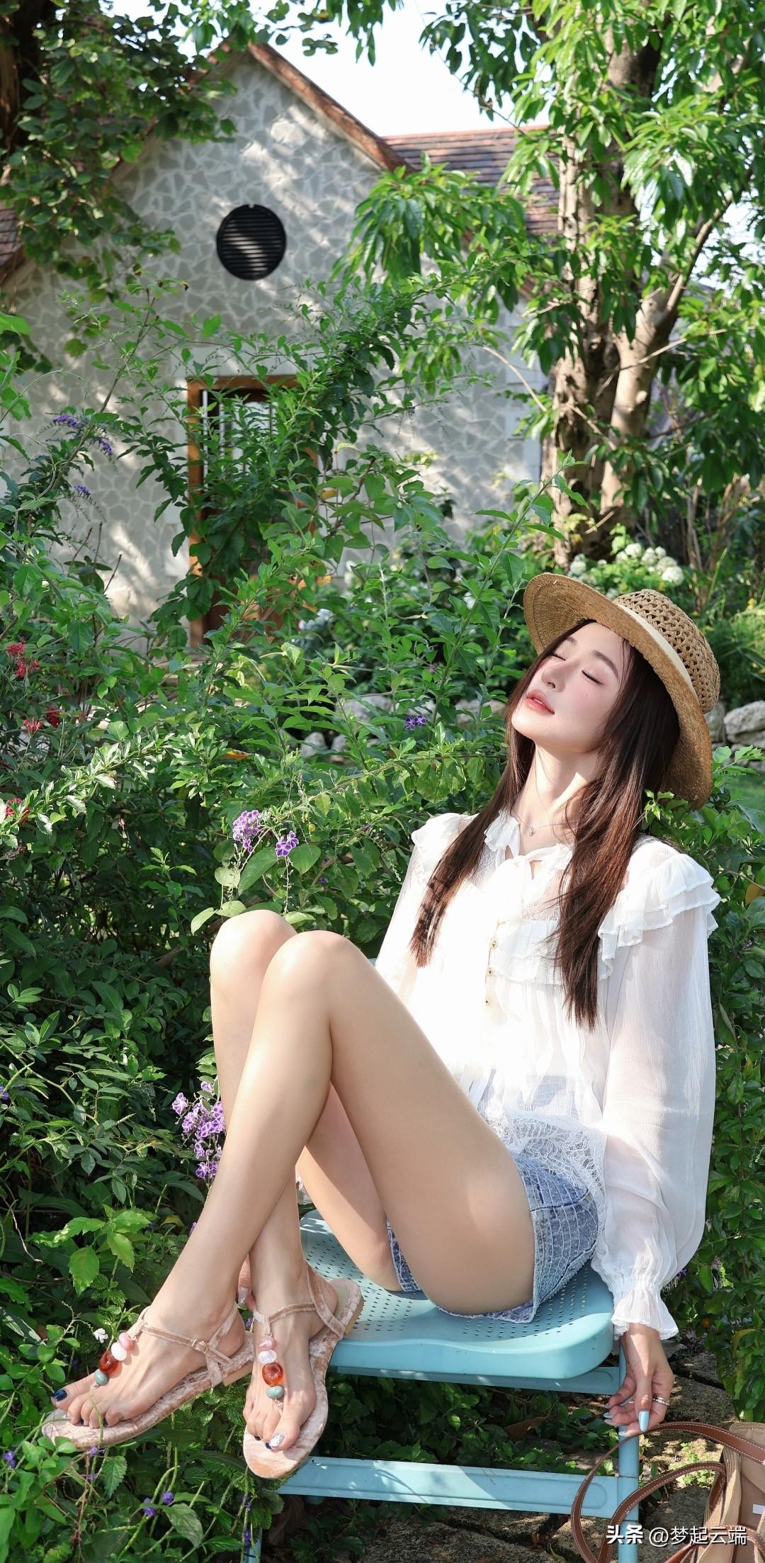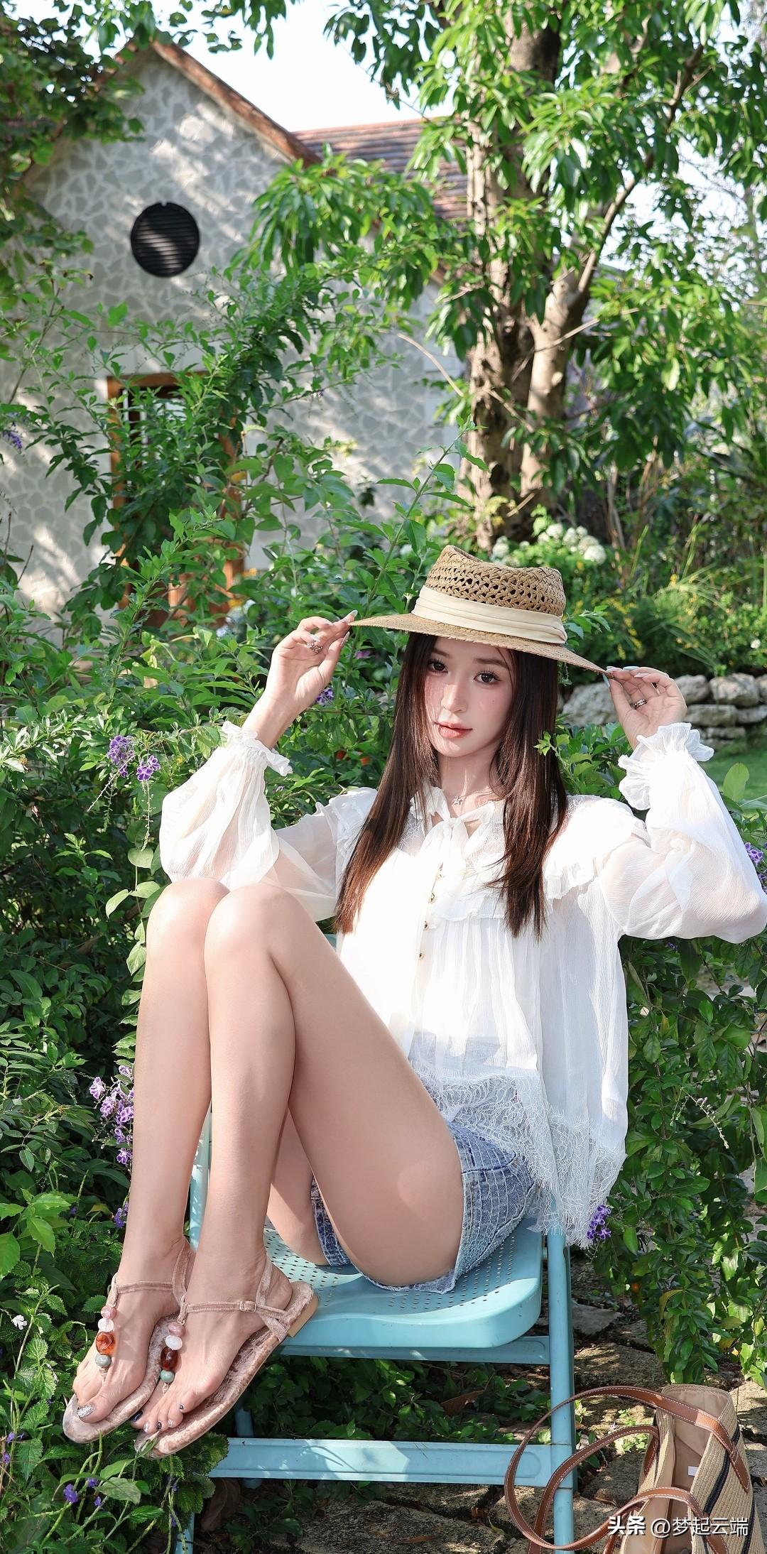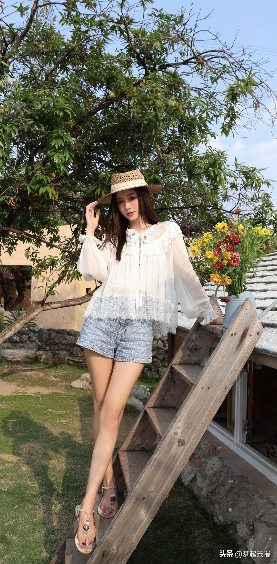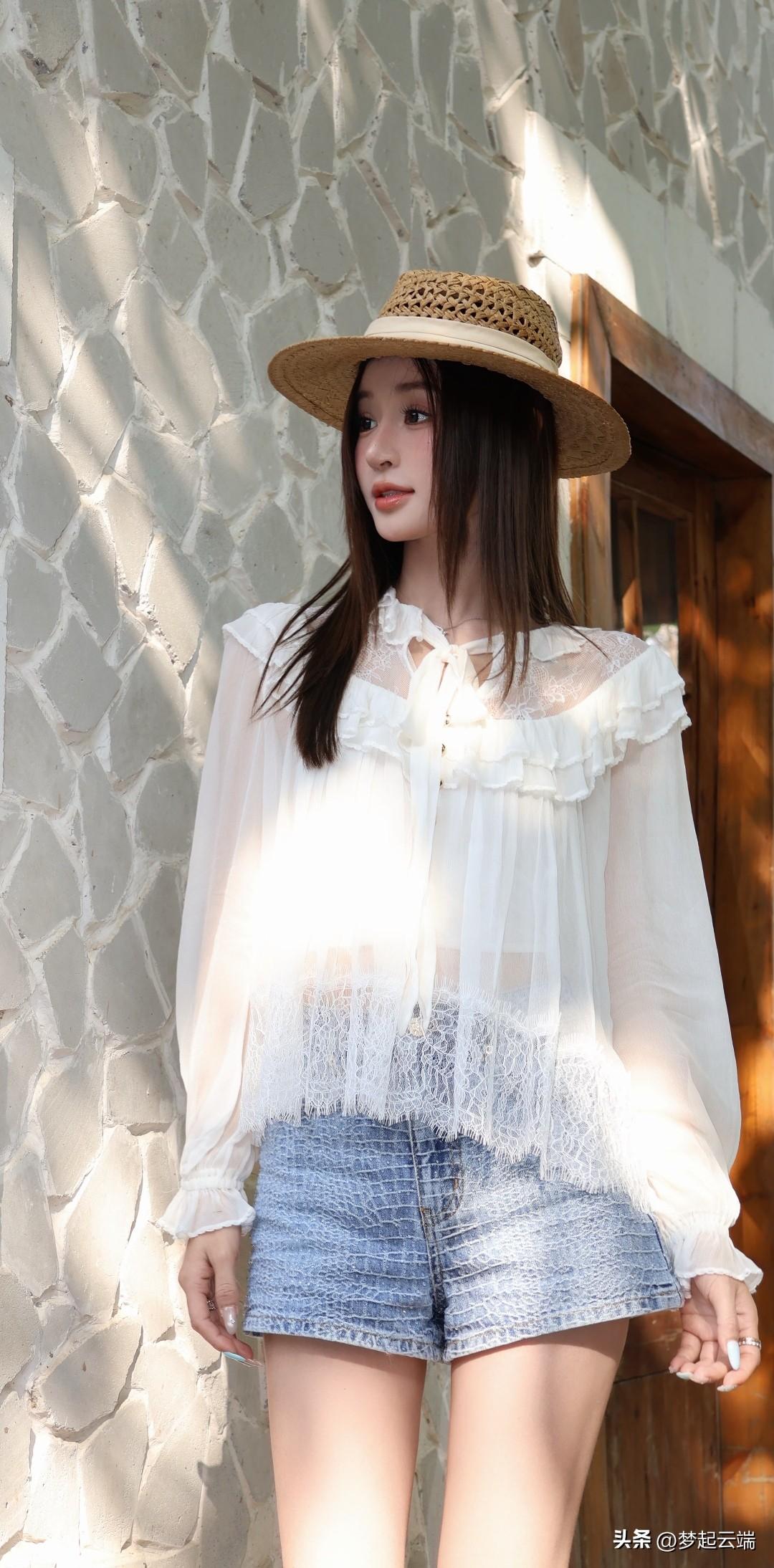 清新自然,少女心满满,白色蕾丝上衣搭配绿色植物,完美融合自然与时尚!🌿💕