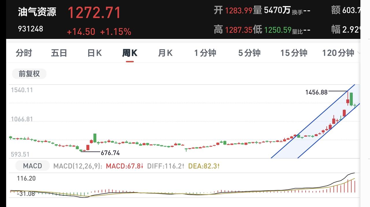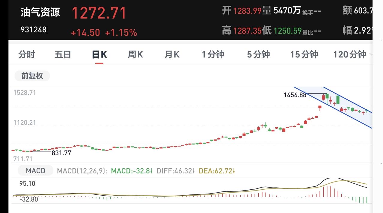 基金:油气资源板块今天会怎么样 昨天基金亏损10831元,基金持有701278元,现金持有1263583元,现金收益35元,资产总额1964861元,还是处于小幅度波动状态。 本周有了四个交易日,两盈两亏,两个交易日盈利,两个交易日亏损,周亏损1852元。 本月有了14个交易日,五赢九亏,五个交易日盈利,九个交易日亏损,月亏损36409元。 今年以来亏损9637元,亏损损率0.97%,跑赢了全国28.66%的基民,也跑赢了沪深300指数1.01%的下跌幅度。 近一年以来收益351679元,收益率25.31%,跑赢了沪深300指数14.29%的上涨幅度。 持有的基金中,昨天晚上净值更新以后,下跌幅度最小的三个板块是:5G板块,创业板指,证券板块,下跌幅度最大的三个板块是:新能源汽车板块,可控核聚变板块,军工板块。 欧洲市场昨天下跌,法国下跌了1.87%,英国下跌了2.37%,德国下跌了2.82%,下跌幅度都不小。 美股市场昨天晚上也是下跌,标普指数下跌了0.27%,纳斯达克指数下跌了0.28%,道琼斯指数下跌了0.44%,下跌幅度都不大。 昨天晚上外围走势不佳,但我们这边有关部门已经喊话护盘,这会有效改善今天的开盘状况,大幅度低开的可能性不大,基本上是平盘状态开盘,高低开的幅度都不会大。 昨天油气资源板块逆势上涨,板块上涨了0.39%,持有人数在所有板块当中排名第14位。 油气资源板块日线级别处于短期下跌通道中,昨天的位置来到了这个下跌通道的上轨线附近,凡是到了上轨线附近的时候,大概率都会震荡回落,所以,这个板块今天震荡调整的可能性很大,但如果上涨突破这个短期下跌通道的上轨线,短线有可能会改变日线级别的下跌趋势。 油气资源板块周线级别处于上涨通道中,距离上涨通道的下轨线很近,近期观察会不会跌破这个上涨通道的下轨线,如果有效破位周线级别上涨通道的下轨线,长线持有的人需要注意风险。 今天早上低开比高开要好,最不好的走势,今天早上开盘以后高开高走,这样下午容易冲高回落,如果早盘小幅度低开,然后稍微下探一下,下探以后再拉起,这才是最好的走势。 今天还要注意成交量,反弹的过程中,成交量需要有效放大,有效放大的意思就是放大幅度在10%以上,但也不能放的过大,放量幅度超过20%也是不好的,适当的放量才是最适宜的。 花1秒钟点赞,花30秒钟评论,就是对我最大的支持,谢谢大家的支持。