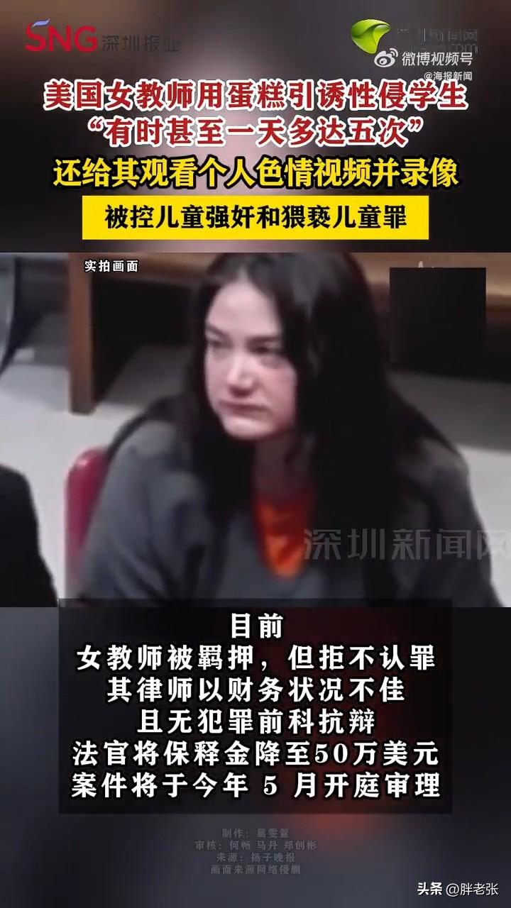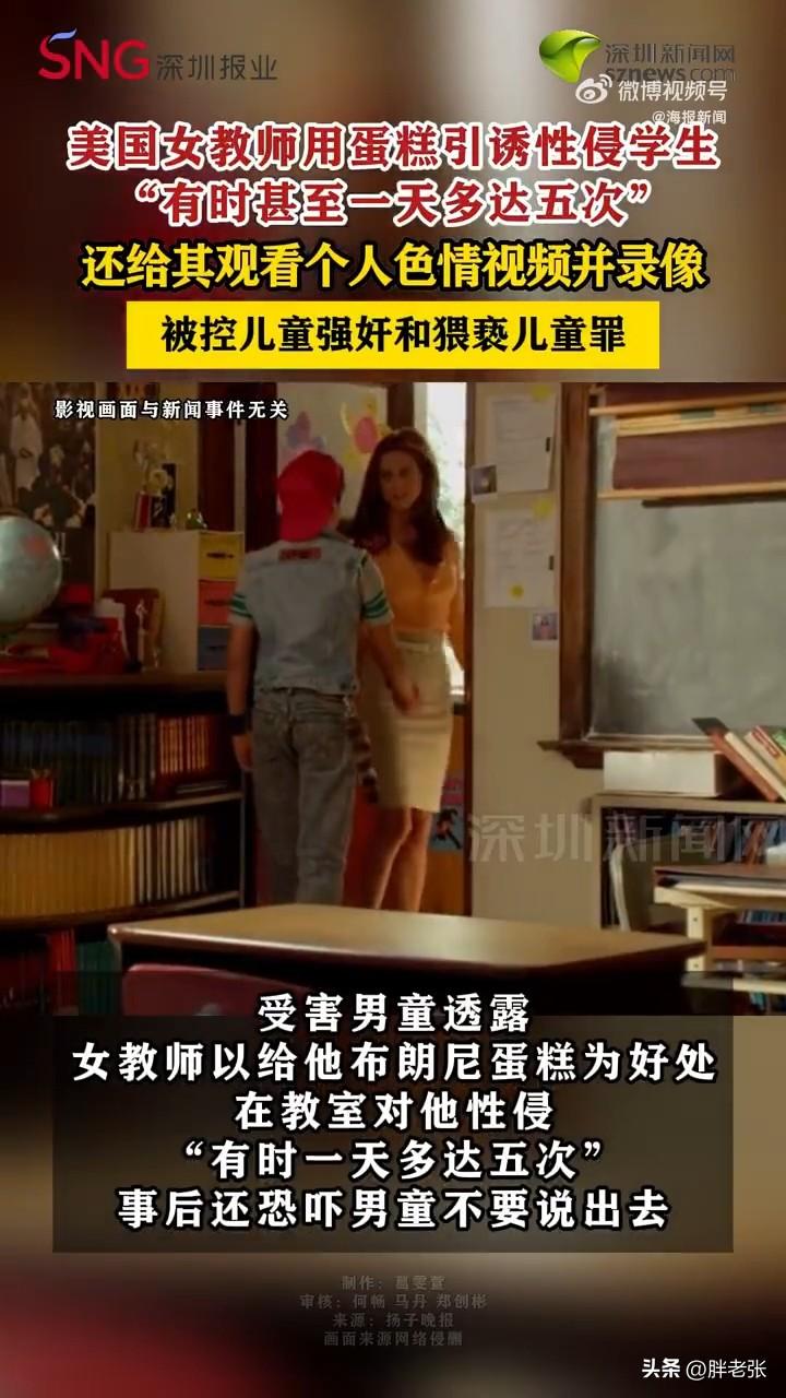 太炸裂了!这是为人师表能做出的事吗?! 近日,美国一名32岁女教师因涉嫌多次性侵男学生,面临儿童强奸和猥亵儿童的重罪指控。 据悉,女教师以给男同学“布朗尼蛋糕”为好处,在教室对他性侵,“有时一天多达五次”,而且她还将过程录像…真的是太变态了! 32岁的她到底有多饥渴?居然把魔爪伸向了10岁的孩子,他还在长身体发育阶段,一天5次,这频率会不会让他停止发育? 女人如果真想应该不会缺男人吧,为什么非要性侵自己的学生呢?这是有什么特殊癖好吗?