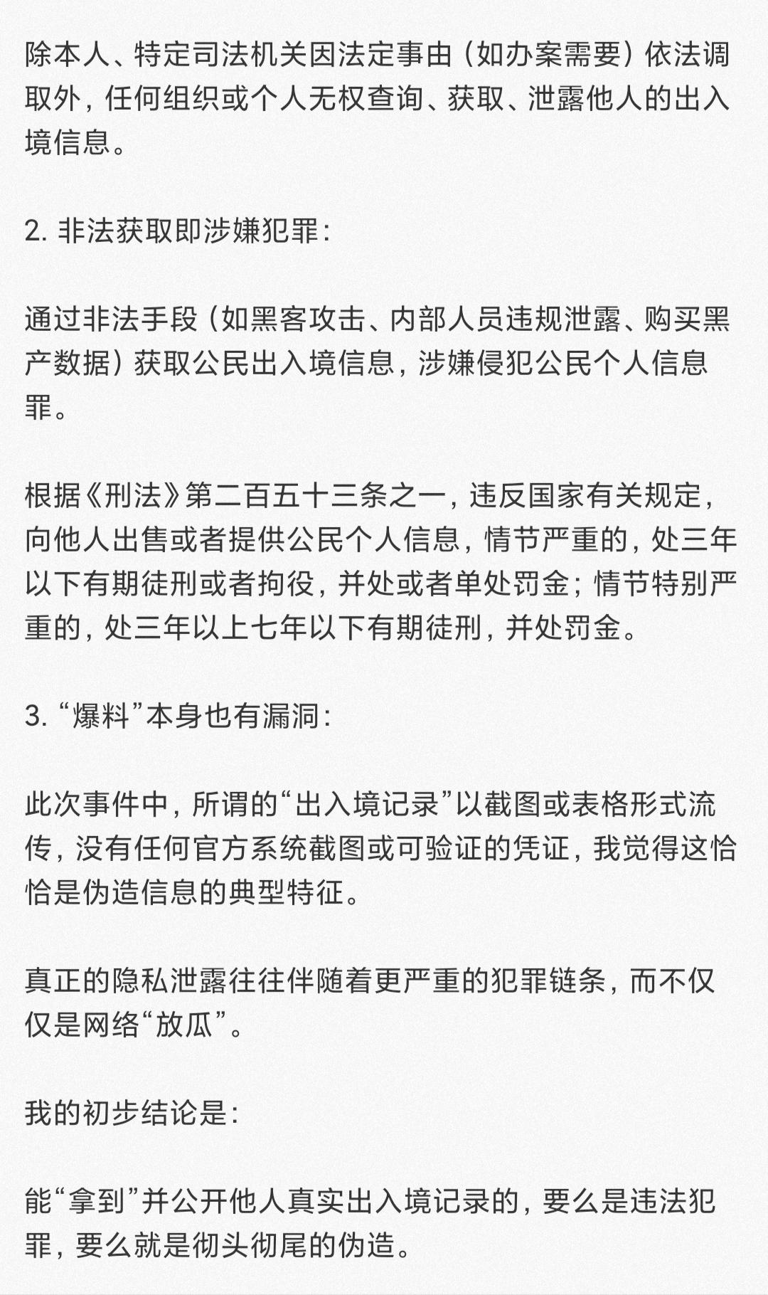 从伪造聊天记录、旧谣言翻炒、编造INS浏览记录到编造私生爆料,其中更包括伪造出入境记录以及购买记录……然后外网爆料、内网搬运、营肖号联动,几个评论就能瞬间高位热搜…… 真的以为外网发帖就能逃避法律制裁?真的以为以吃瓜为名搬运再删掉就能风过无痕? 造谣成性的肖战粉丝群体都来看看专业律师科普吧,虽然你们不一定看得懂。 律师:此次事件中,所谓的“出入境记录”以截图或表格形式流传,没有任何官方系统截图或可验证的凭证,我觉得这恰恰是伪造信息的典型特征。 疑似王一博私生爆料 綦美合儿童玩具