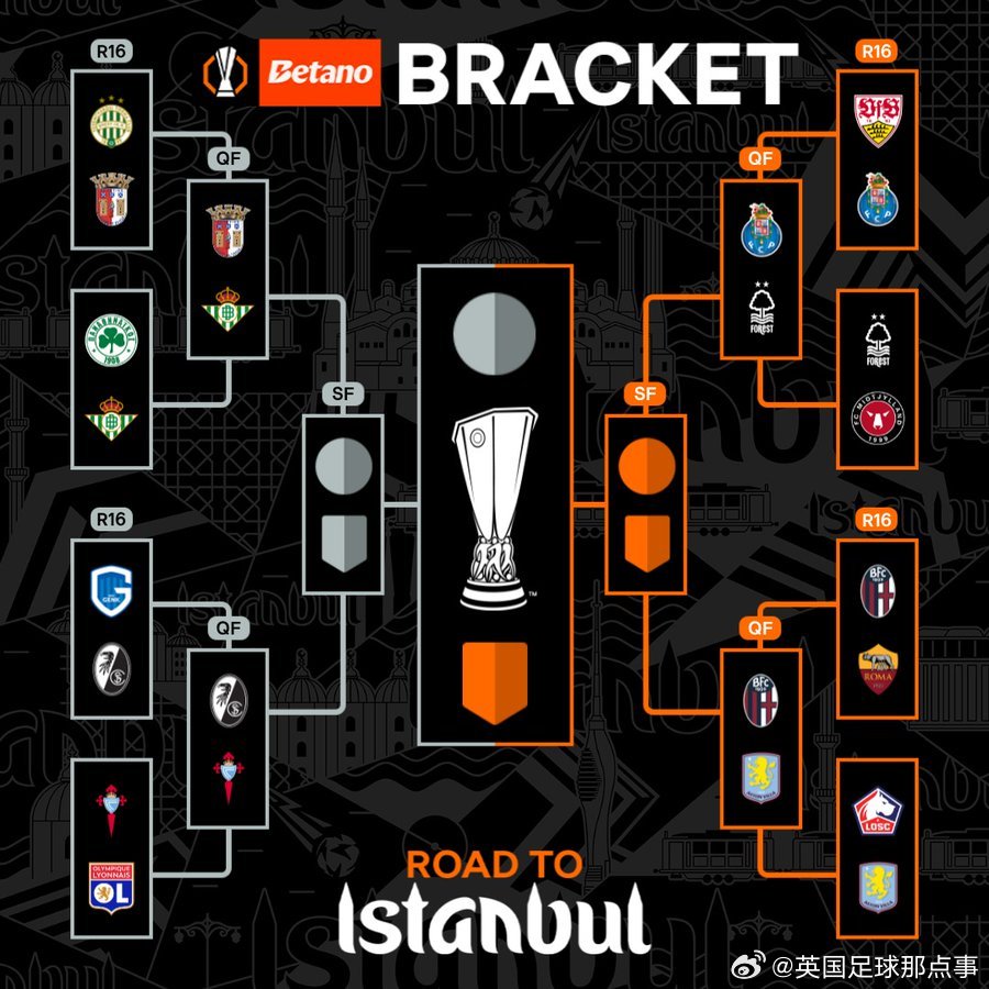 25/26赛季欧联杯8强及对阵出炉⬇️布拉加vs贝蒂斯弗赖堡vs塞尔塔波尔图vs