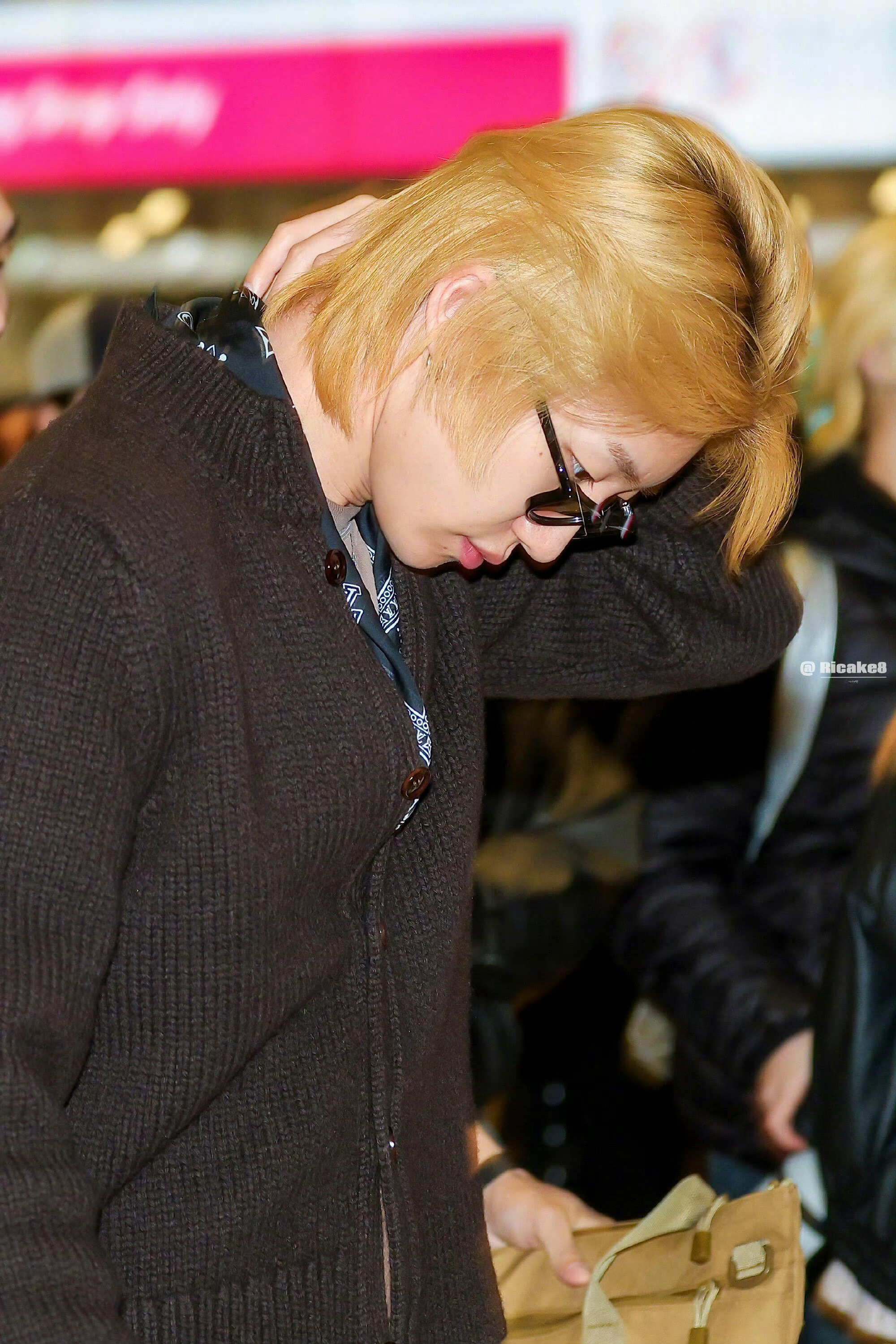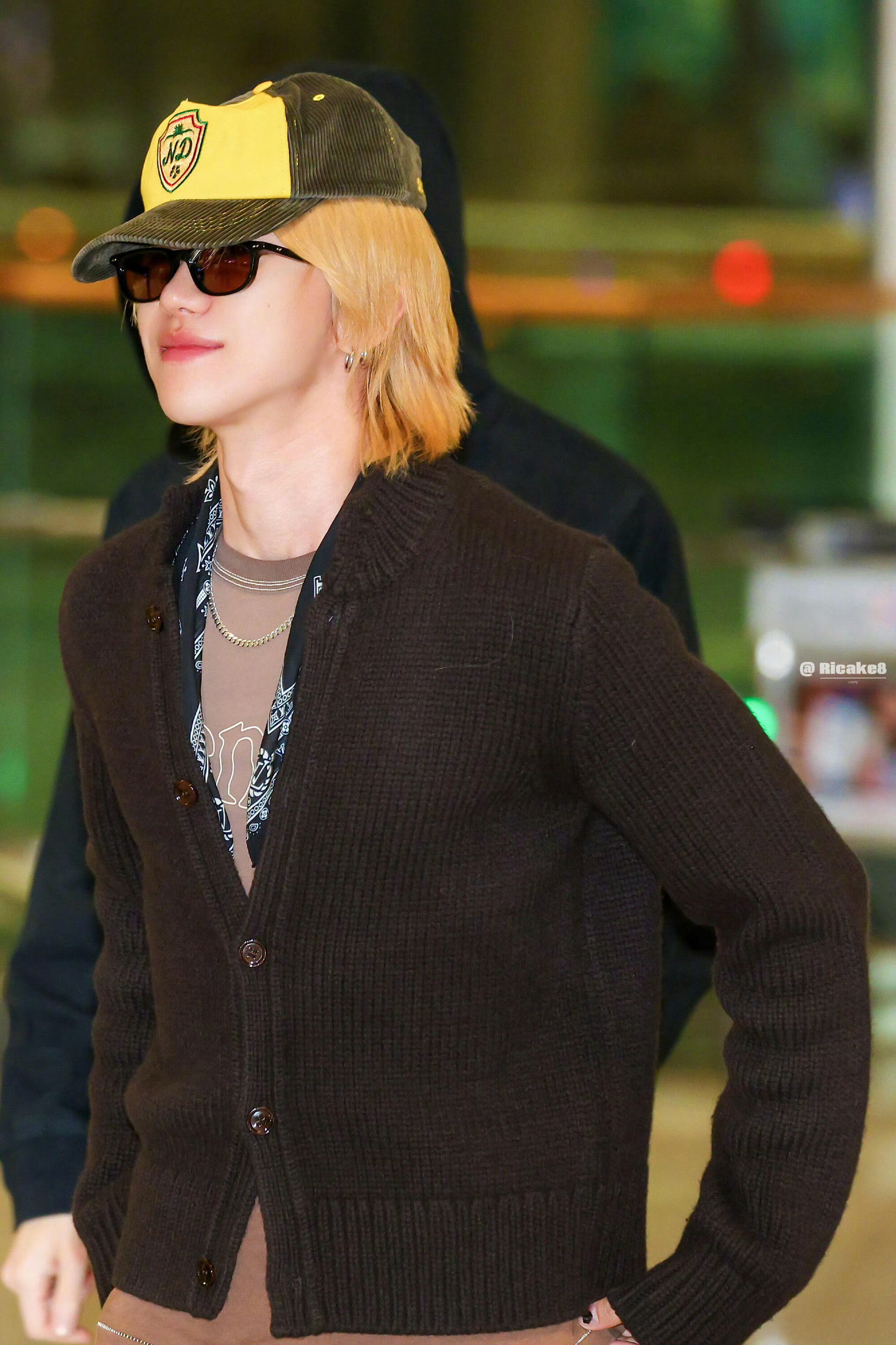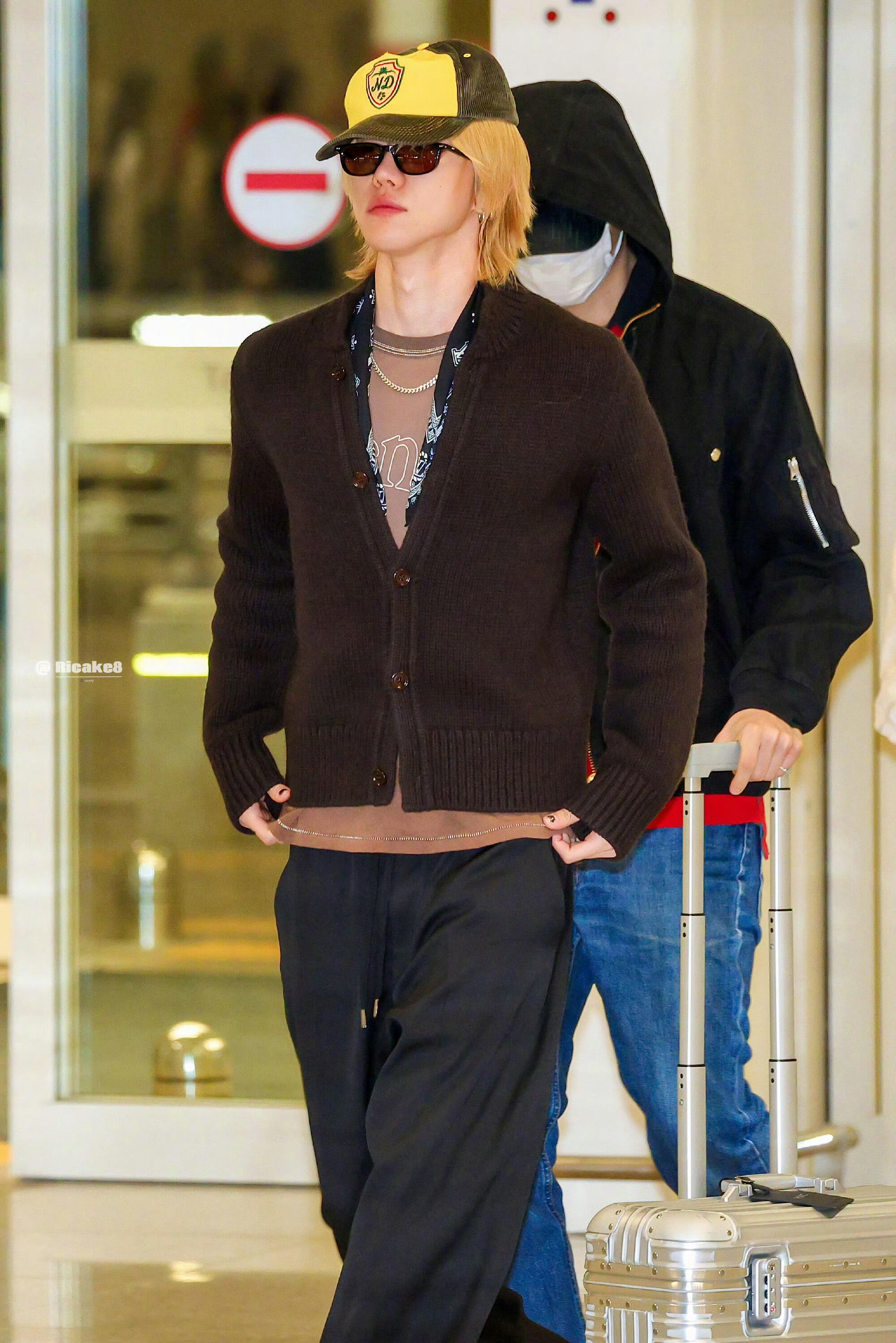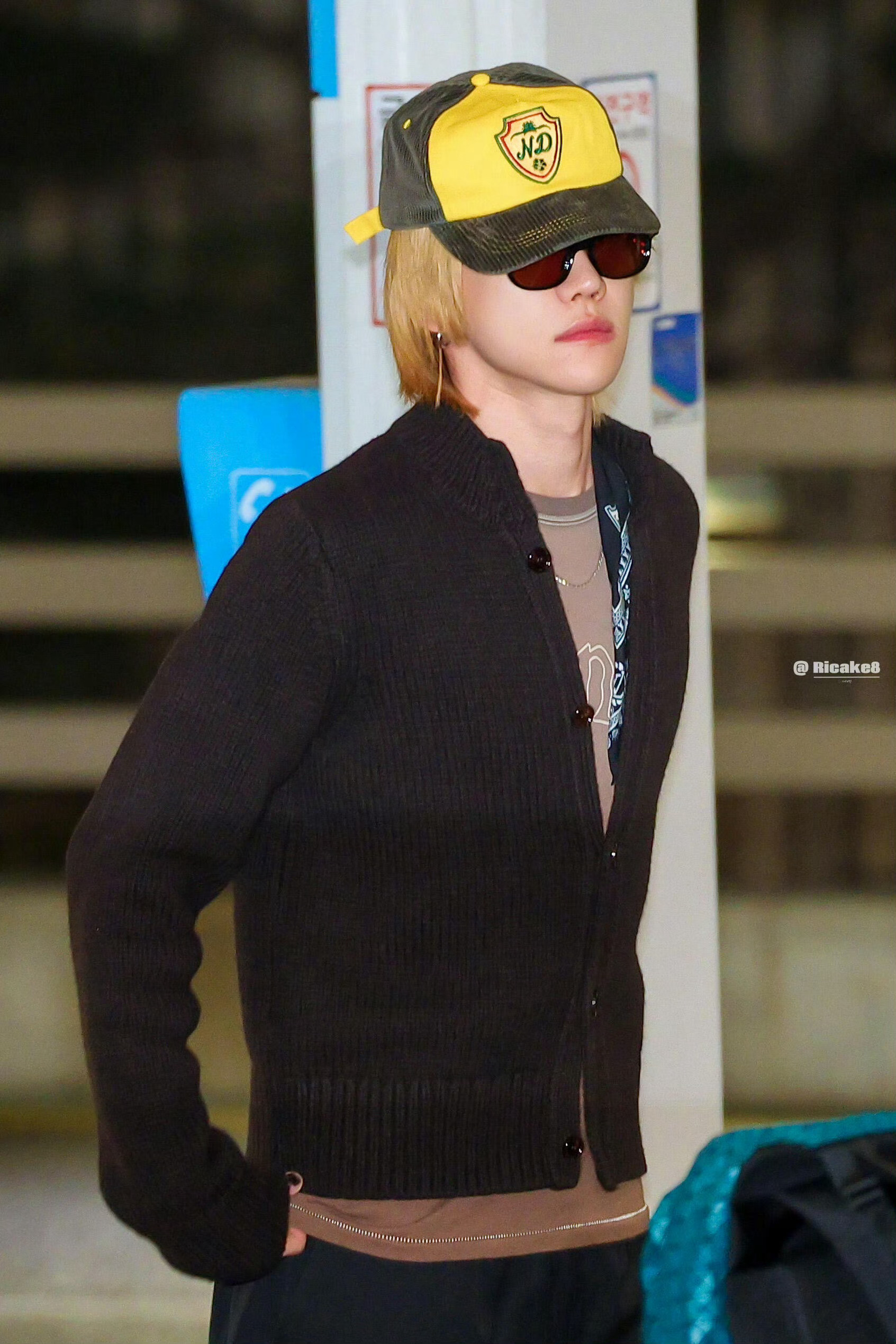 徐明浩机场金发 徐明浩今早的机场look小黄帽+金发造型,太潮了