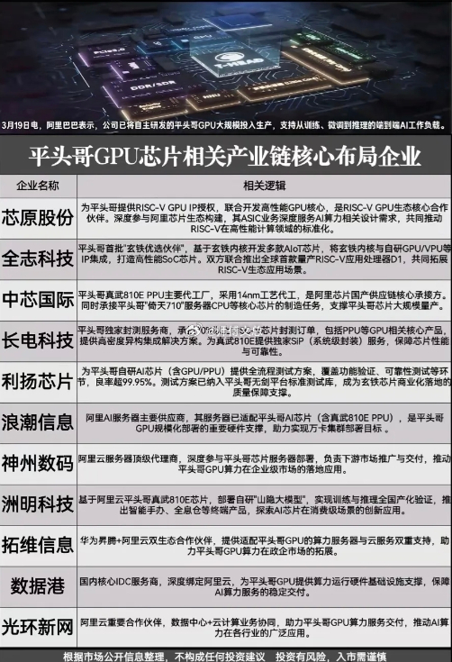 最新算力概念三重利好:Token经济+平头哥GPU+贵州算电协同,核心产业链全梳理!3月19日,华为、阿里、贵州算力枢纽接连释放重磅信号:Token经济日均消耗180万亿,平头哥GPU大规模量产,全国一体化算力网络贵州节点成果发布。(相关概念龙头代表见配图)