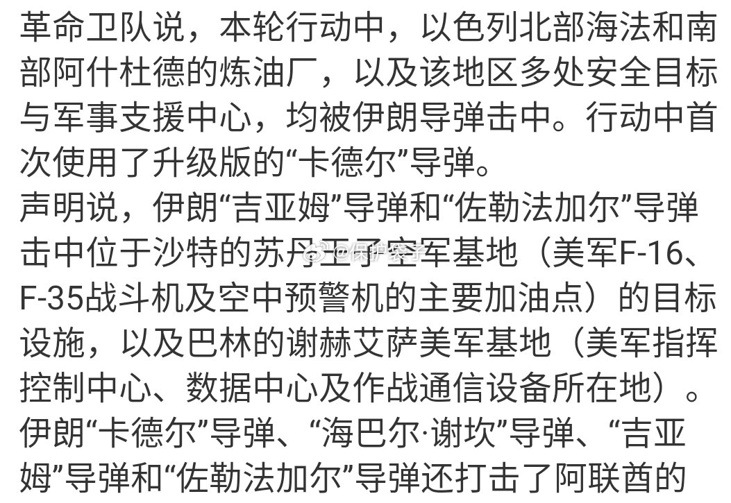 伊朗导弹击中以色列海法炼油厂就目前伊朗失去制空权的情况下,找一些固定的高价值目标是最优选择。如果有非常值得投入的地方,也不妨来个饱和式覆盖。 其实特拉维夫作为经济命脉,在金融,在医药生物,在淡水资源,在军工制造等等都是有着非常重要的意义。而因为面积有效导致腾挪不容易,一旦受到损毁对经济上的痛感是大面积国家不可比拟的。 所以这次以或者美相对来说还算克制,没有往伊民生相关或者说普通人头上侧重,一个劲在找那些鹰派。以心里也清楚,一旦过多的普通人受到伤害,虽然国际上的观瞻早就是挠痒痒,但伊朗直接对特拉维夫加大力度了那是真会痛。就算拿下了目标,自身要缓过气也得十年八年,这中间说不好谁又窜了出来就难了。袋子时评