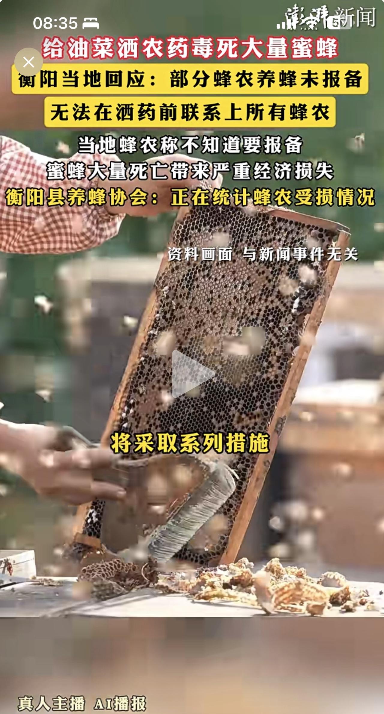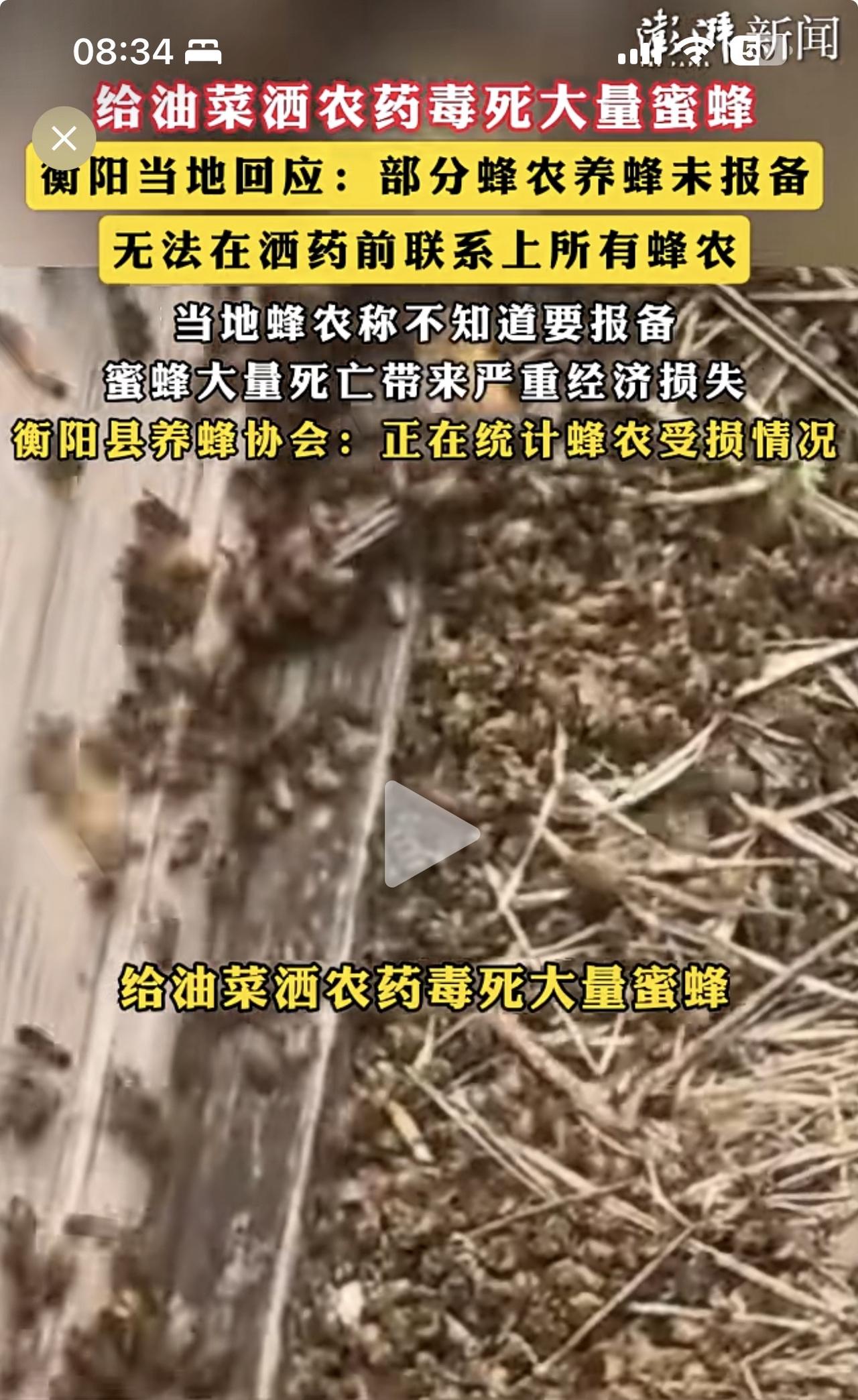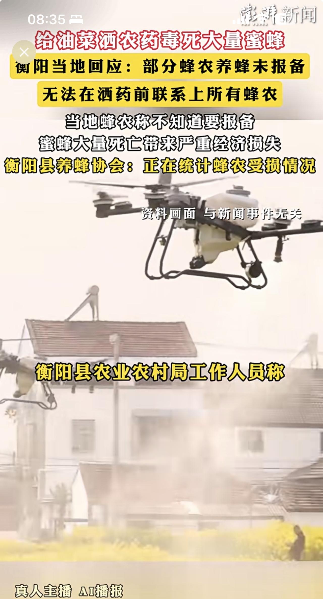 你们听说过吗?油菜花都需要喷洒农药,反正从小到大我是头一回听说! 据澎湃新闻报道,湖南衡阳当地组织无人机给油菜花喷洒农药,导致蜂农蜜蜂🐝大量死亡,农业农村局和村委会怪蜂农未报备,无法联系!就算蜂农没有报备,你们就该大规模喷洒农药吗? 我说你们无知加愚蠢,你们别不高兴!油菜花需要蜜蜂🐝授粉,否则没有收成,这是一种自然生态链。你们倒好,以为什么都要靠农药,我从小到大没有见过为油菜花洒药,但是收成一样很好。 有一句名言:如果蜜蜂🐝从地球上消失,人类将只能再活四年!你们懂不懂农业知识?如果没有了蜜蜂授粉,我看你的油菜收益在哪里? 有时候,做工作不要这样简单粗暴好不好?