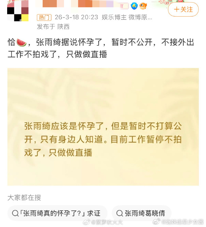 张雨绮怀孕后暂停营业 要是怀孕传闻属实,张雨绮应该没法录女推了。24小时连轴录制、到处跑场景,孕期根本扛不住。她的综艺感真的绝,少了她好可惜
