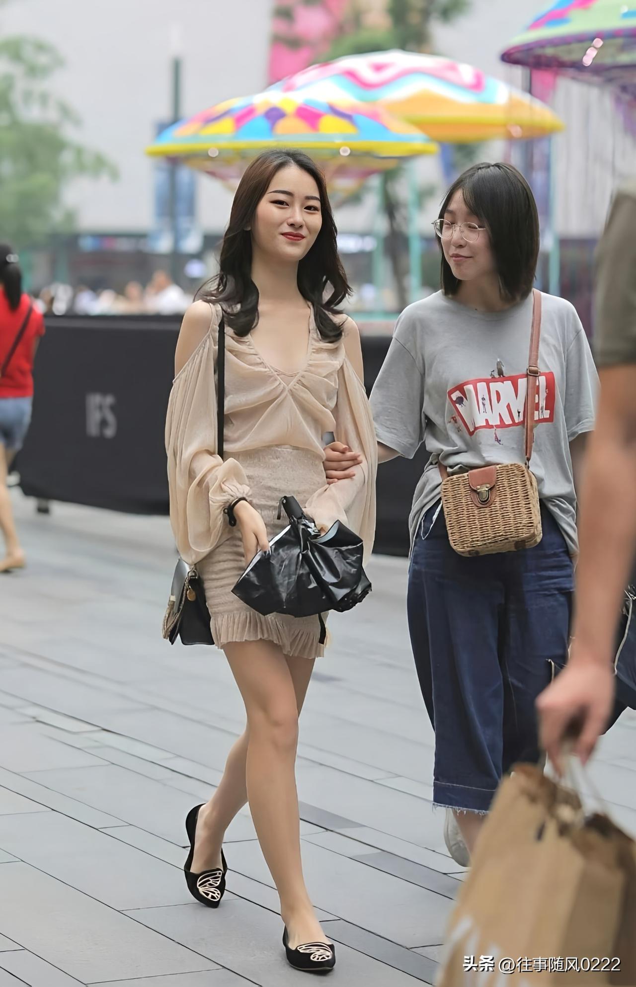 温柔米色连衣裙搭配黑色小包,优雅又时尚
