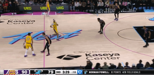 湖人这一节已经得到33分,92-82,湖人喊暂停,喘口气!湖人vs热火