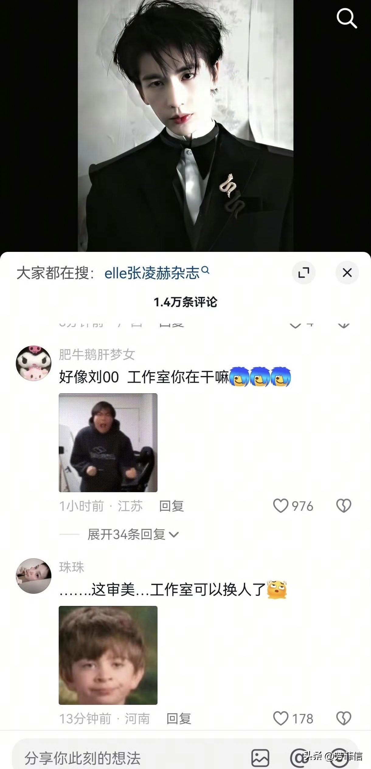 张凌赫登上五大封面本来是好事,谁曾想,舆论朝着不可控方向发展了。 因为《逐玉》的爆火,作为男主的张凌赫迎来了红利,一举拿下了ELLE杂志的4月封面,这也是他人生中第一本五大杂志。 时尚资源的飞升是升咖的直观体现,这对张凌赫来说可喜可贺,然而,当杂志物料出炉,风评翻车得猝不及防。 不少人直言认不出,颜值下滑的声音不绝于耳,粉丝心照不宣地认为张凌赫被拍丑了,广场正齐刷刷呼吁工作室删除杂志相关视频。 最致命的是什么呢?张凌赫一度被打上了“撞脸刘琳琳”的标签。 刘琳琳,风评一言难尽的网红,颜值一般且整感强。 提起张凌赫会想到刘琳琳意味着什么?这个关联度好比杨幂之于三梦奇缘,王安宇之于胡宾果……对艺人的影响是无可厚非的。 尤其张凌赫走的还是颜值路线,有着新生代颜霸之称,能被业内买股,在僧多肉少的娱乐圈杀出重围,靠得就是这张脸。 五大逼格高,象征着升咖,但也正是五大把张凌赫像刘琳琳的一面拍了出来,无形中劝退颜粉。 此情此景,当真是成也五大,败也五大……