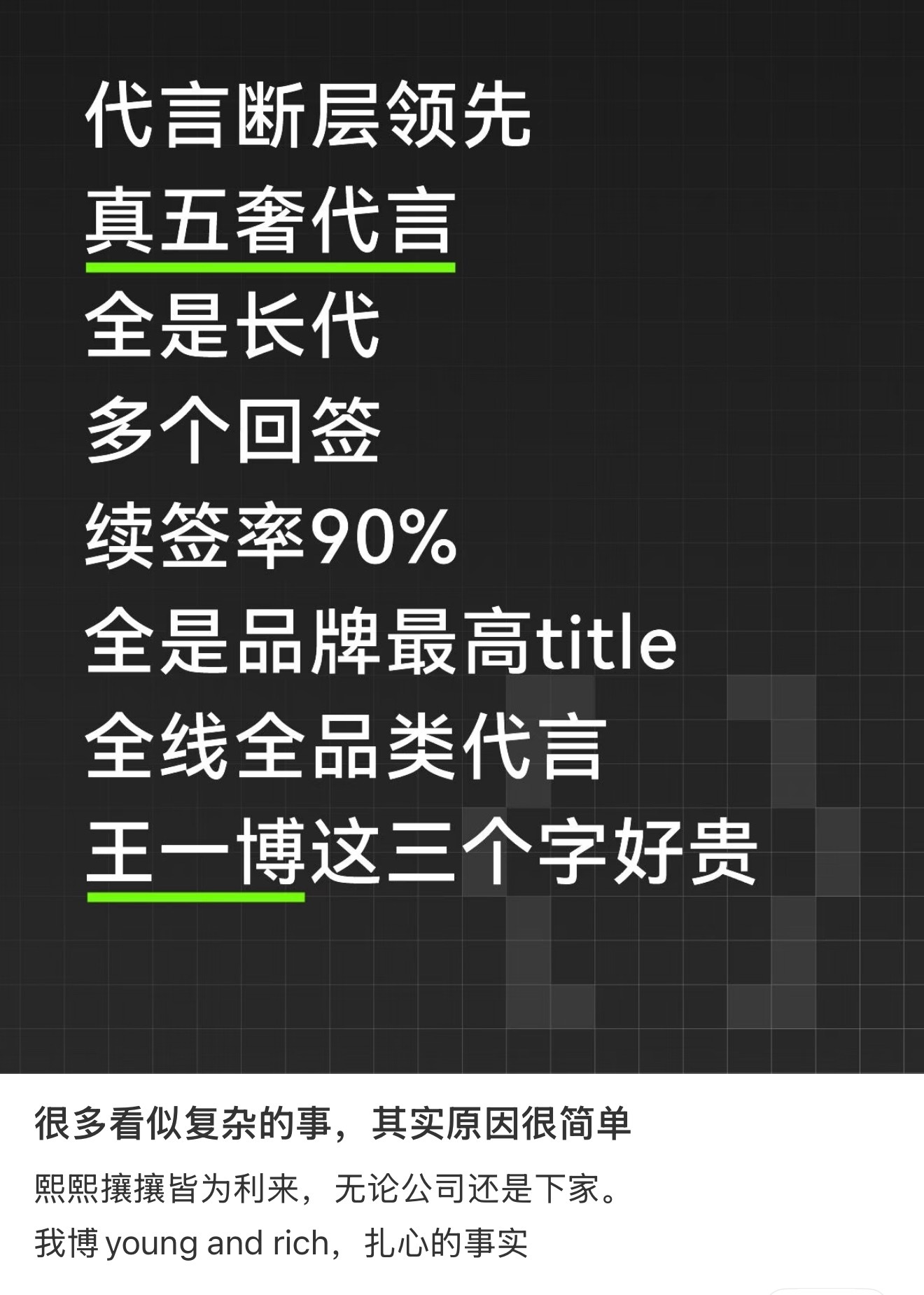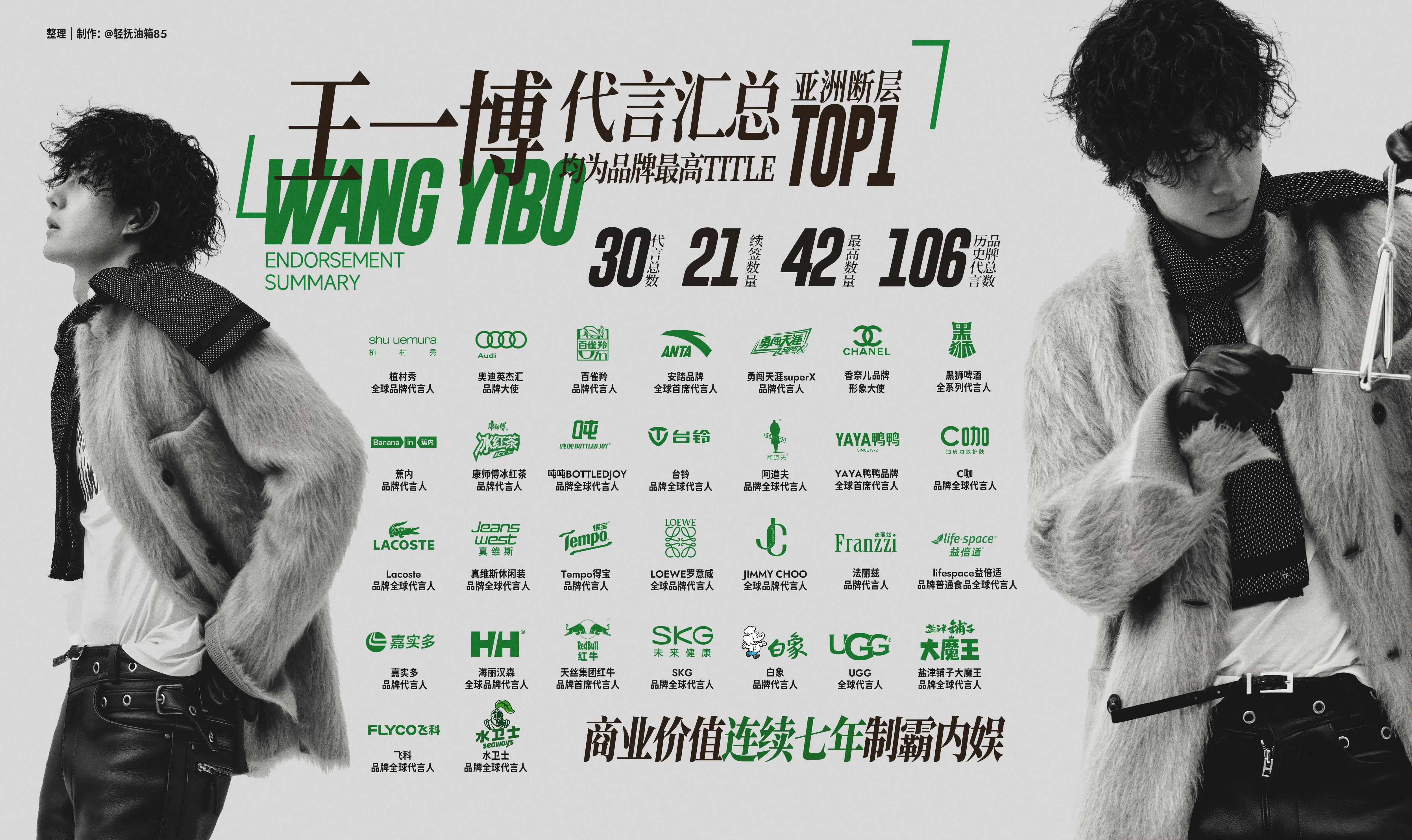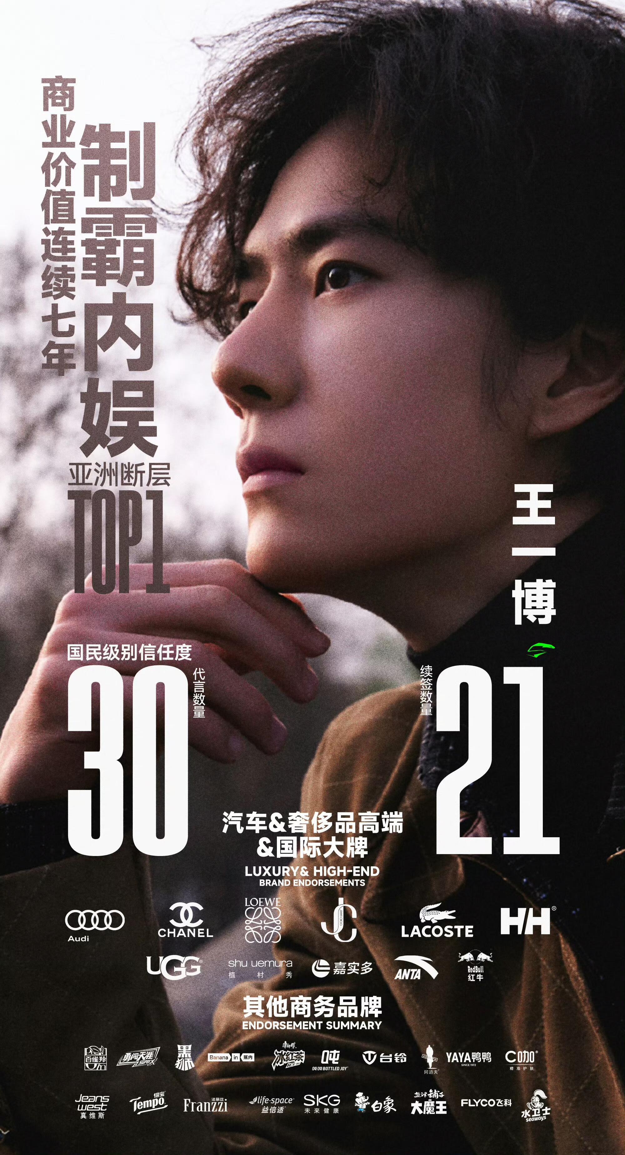 王一博商业价值代言数量连续7年无限定词TOP1没有品牌不想要高级,时尚,专业,深